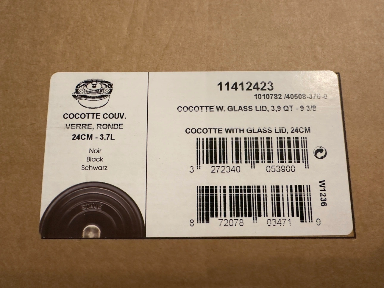 Staub cocotte w/ glass lid 24 CM black color