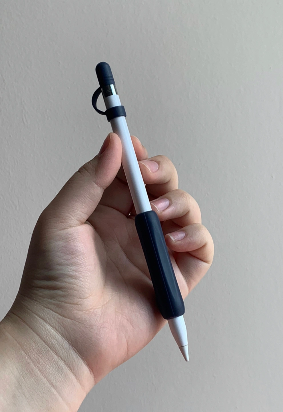 하얀색과, 남색 실리콘 애플펜슬 그립과,