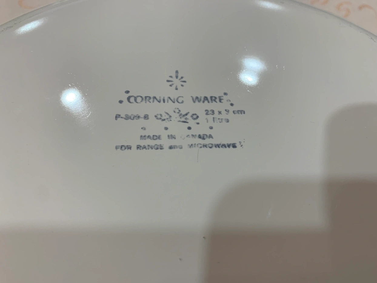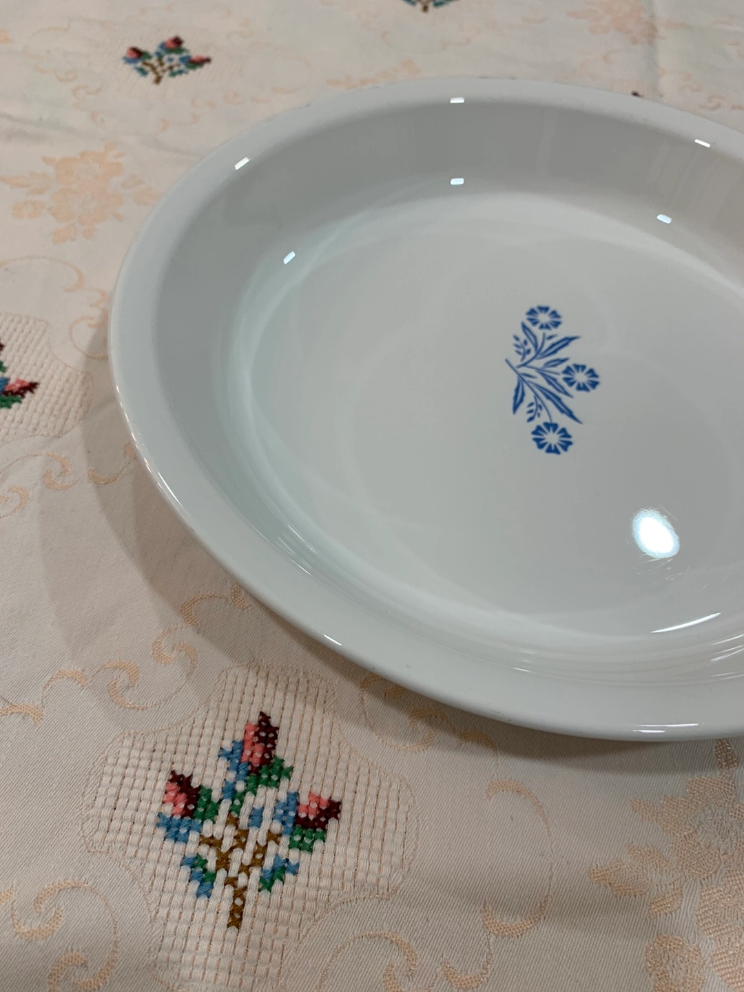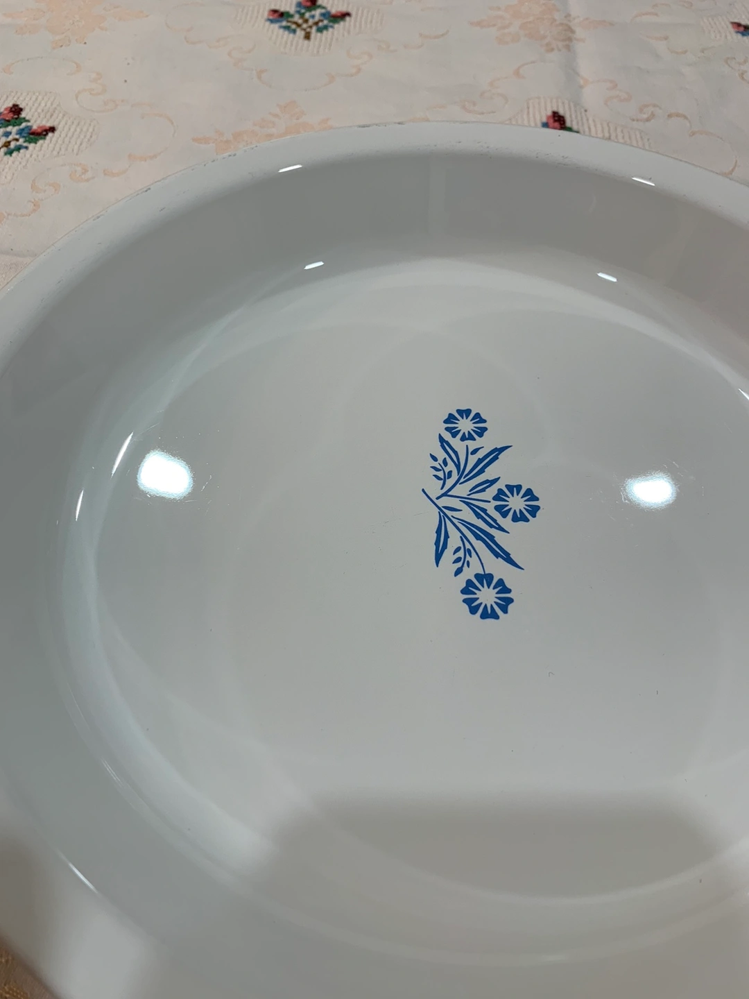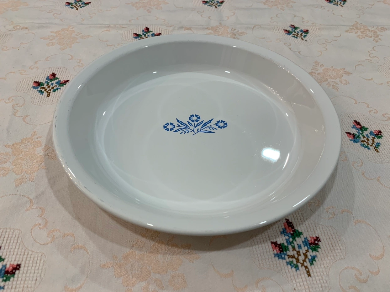 It measures 9 & 7/8” across and 1 & 1/2” deep. It is in really good condition with some light markings on the edge of the plate from use.