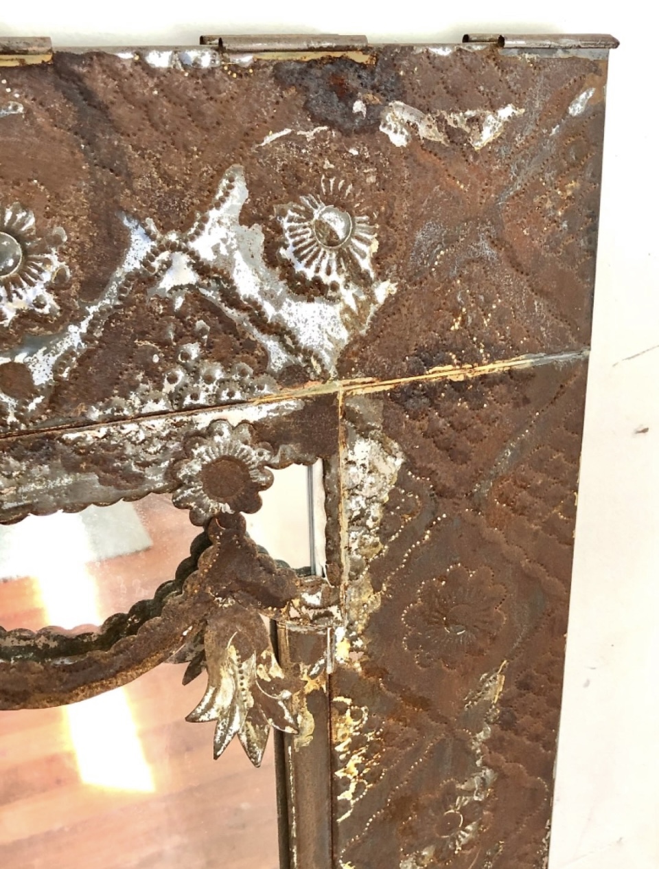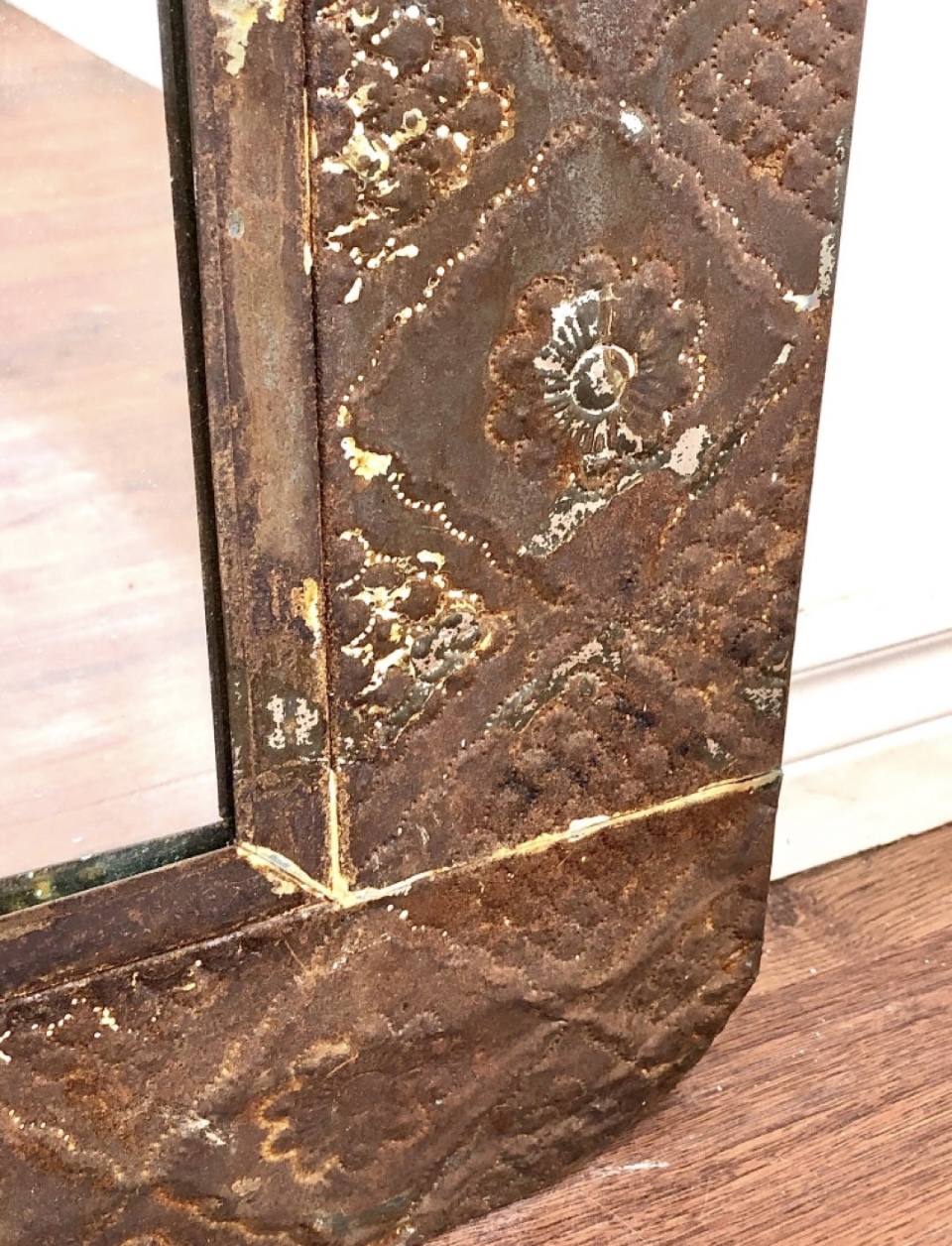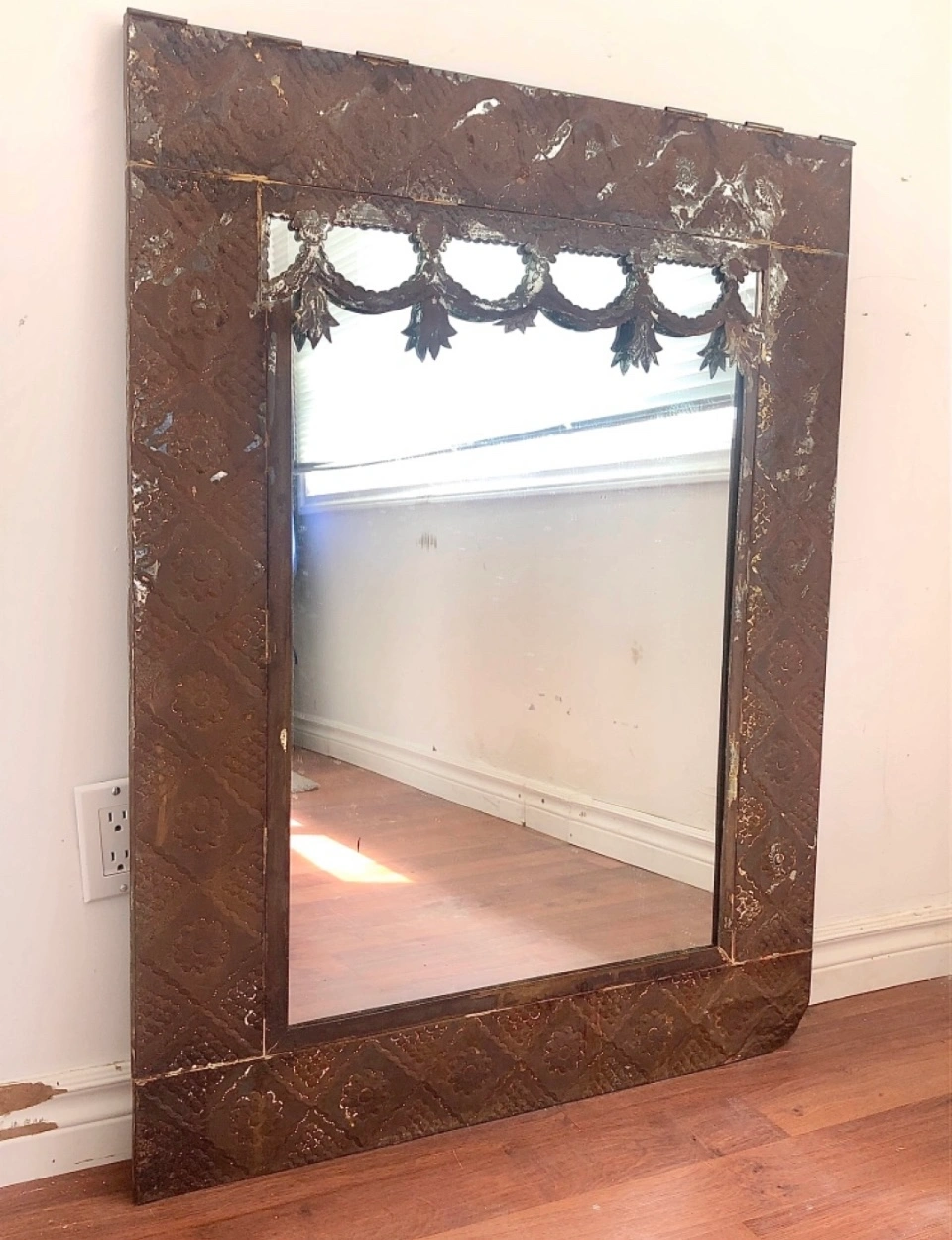 A gorgeous piece of decor to add to your home. An extra large weathered metal frame with beautiful artistic details and a wire on the back for hanging