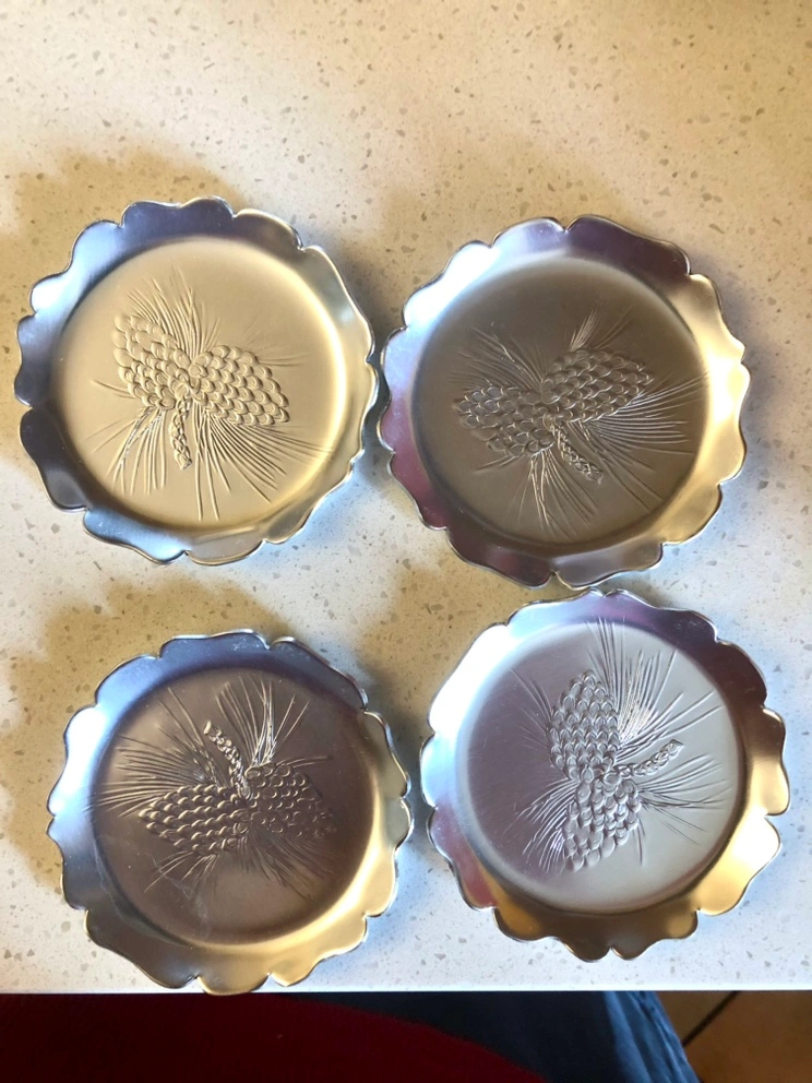 Set of 4 Mid Century Aluminum Coasters.