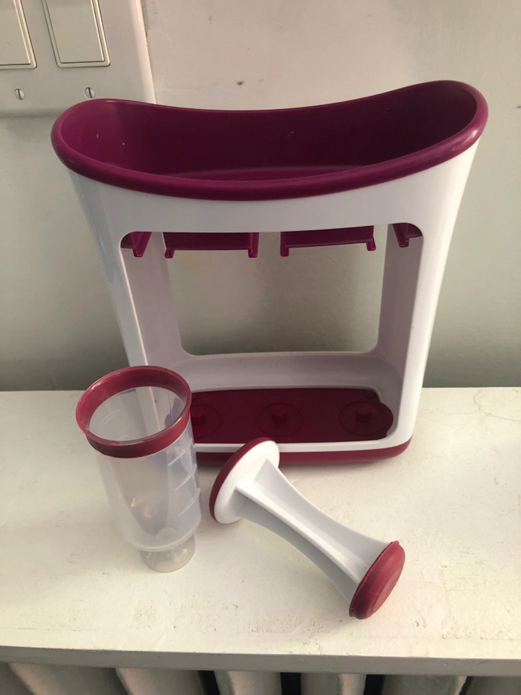 Infantino squeeze station for filling reusable smoothie pouches.