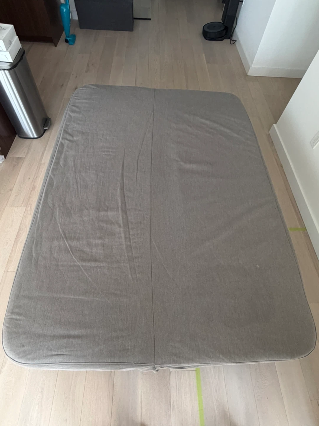 A futon mattress that folds out from a sofa to a bed. It’s comfortable for sitting or sleeping. It was really useful for us. Convenient if you have guests coming over as it can turn into a bed instantly.