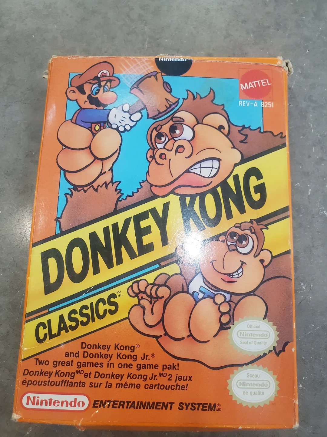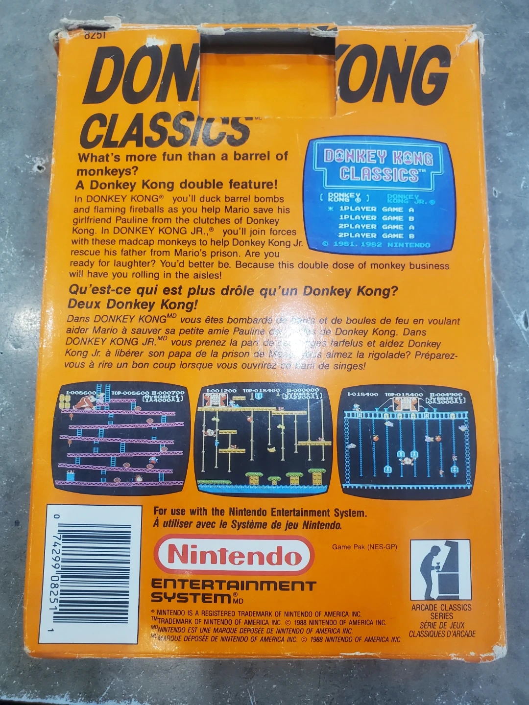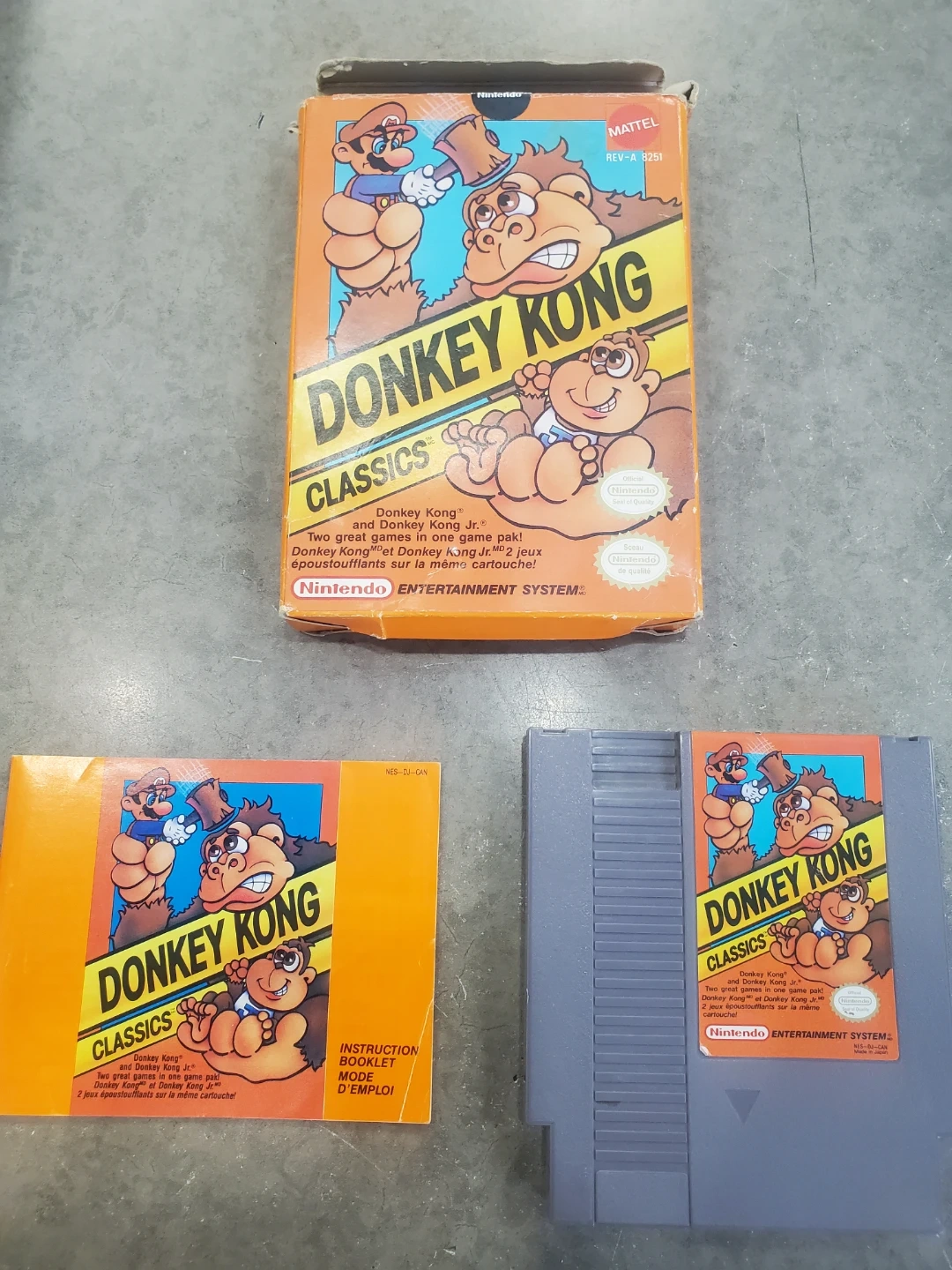 This is Donkey Kong Classics for the Nintendo Entertainment System. It's a double feature with Donkey Kong and Donkey Kong Jr. games. Includes original box and instruction booklet.