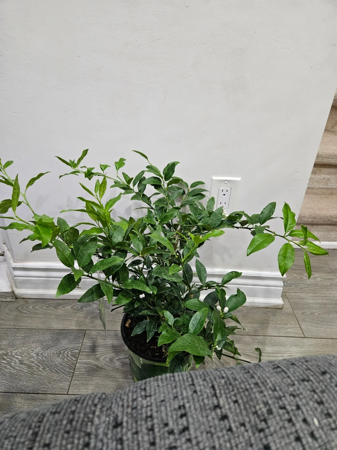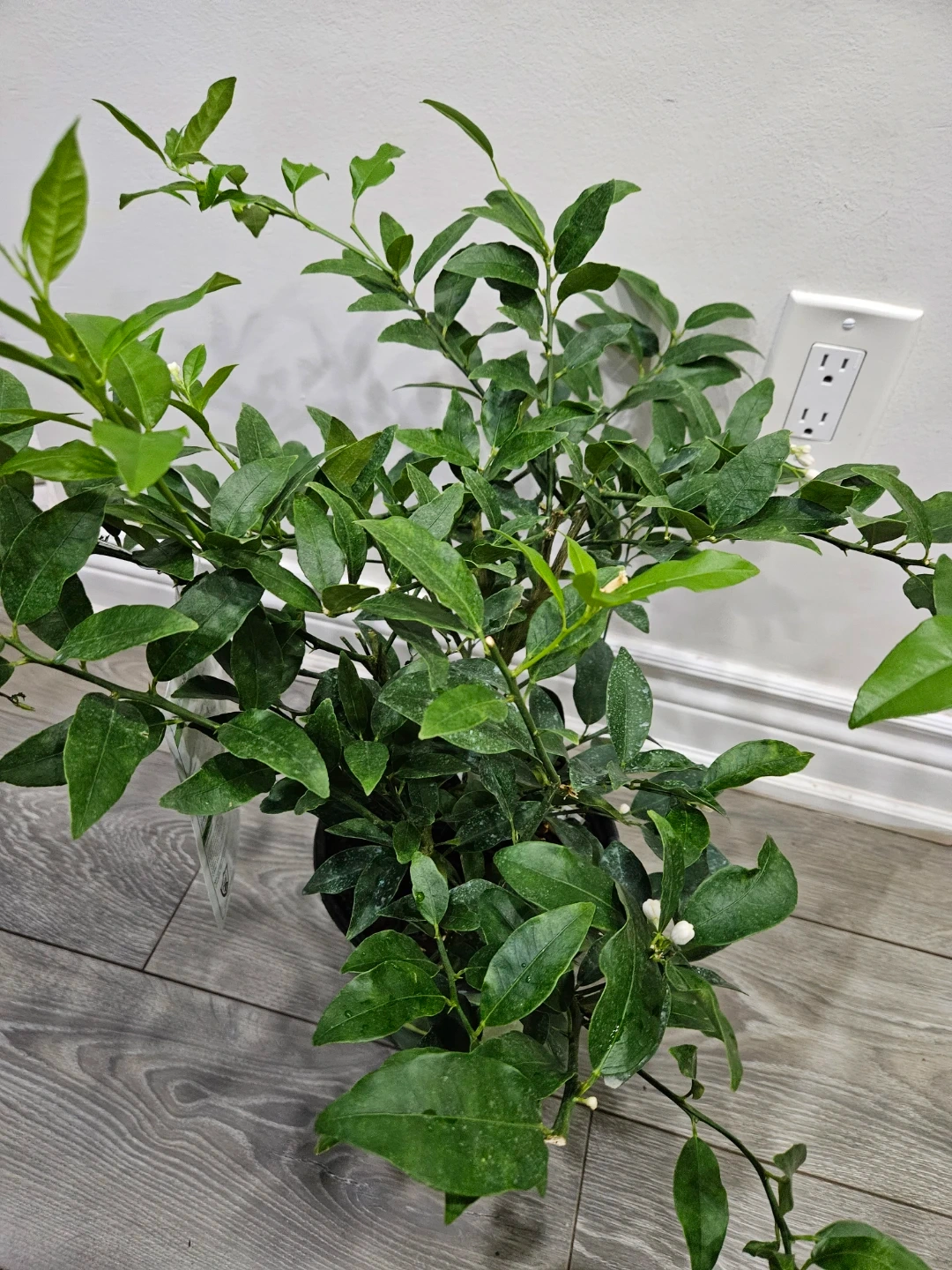 A healthy indoor/ outdoor lemon tree with fragrant white blossoms. It's ready for a sunny spot in your home! This plant brings a touch of freshness to any living space.