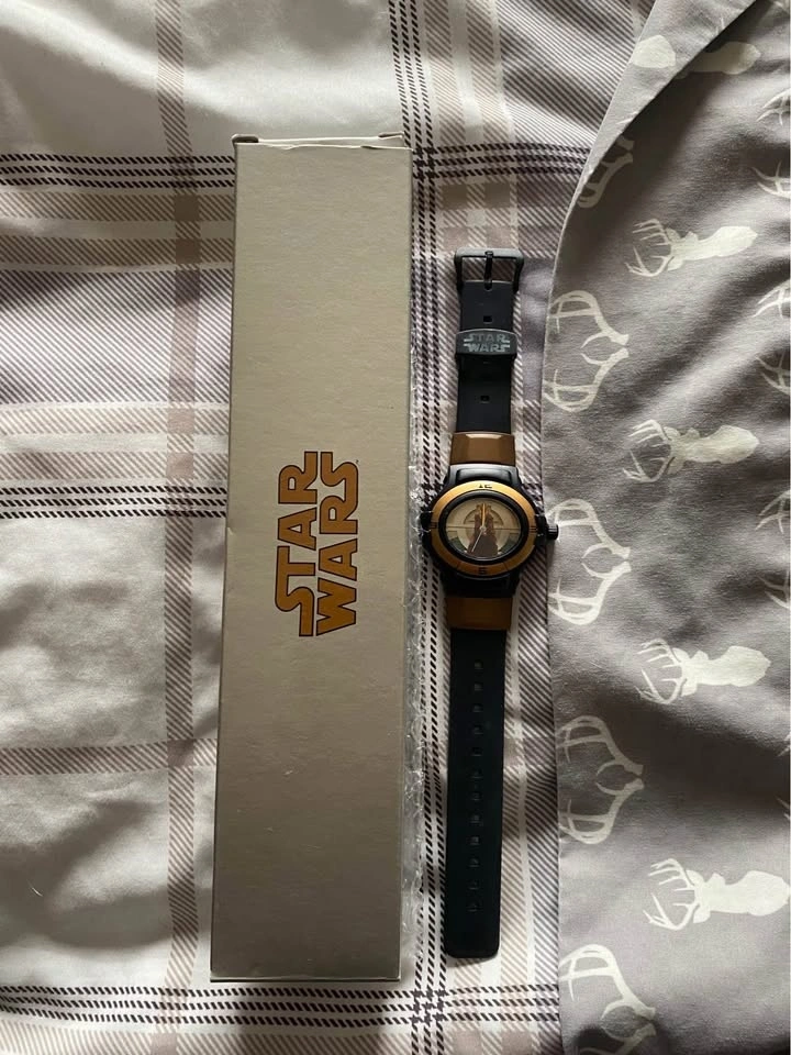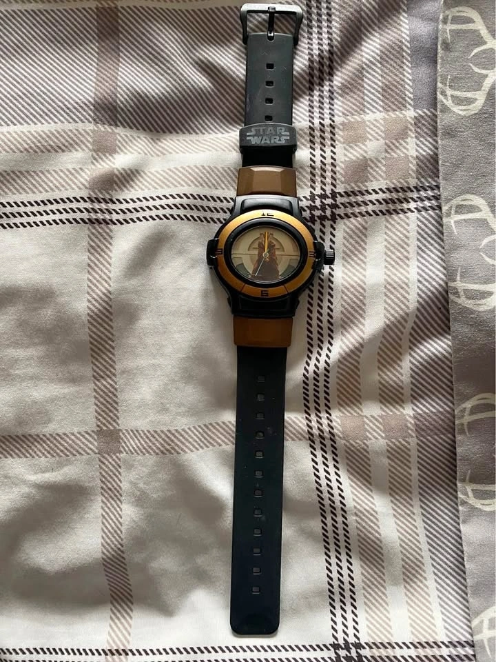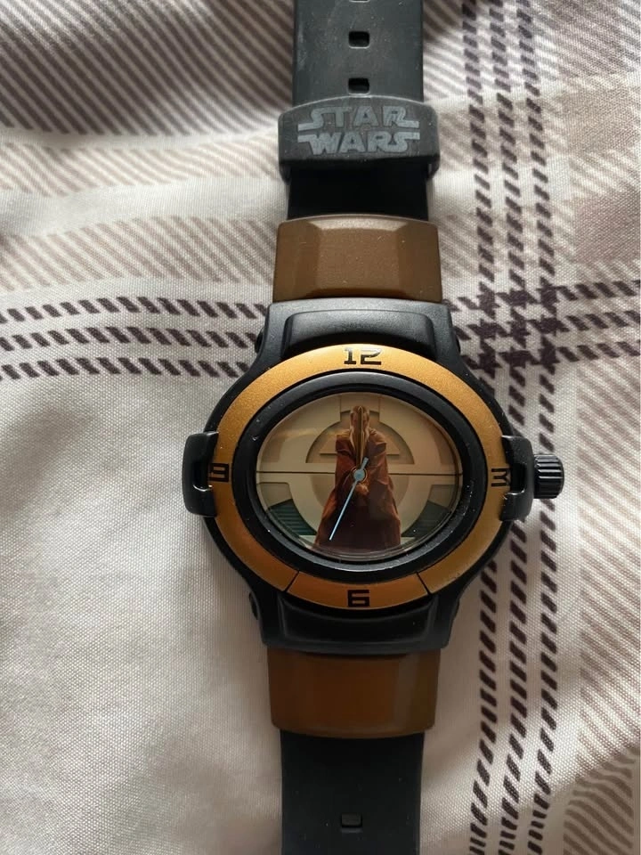 This Star Wars The Phantom Menace watch features Obi Wan Kenobi. It's a 1999 Avon exclusive and has never been worn, but it does need a new battery.