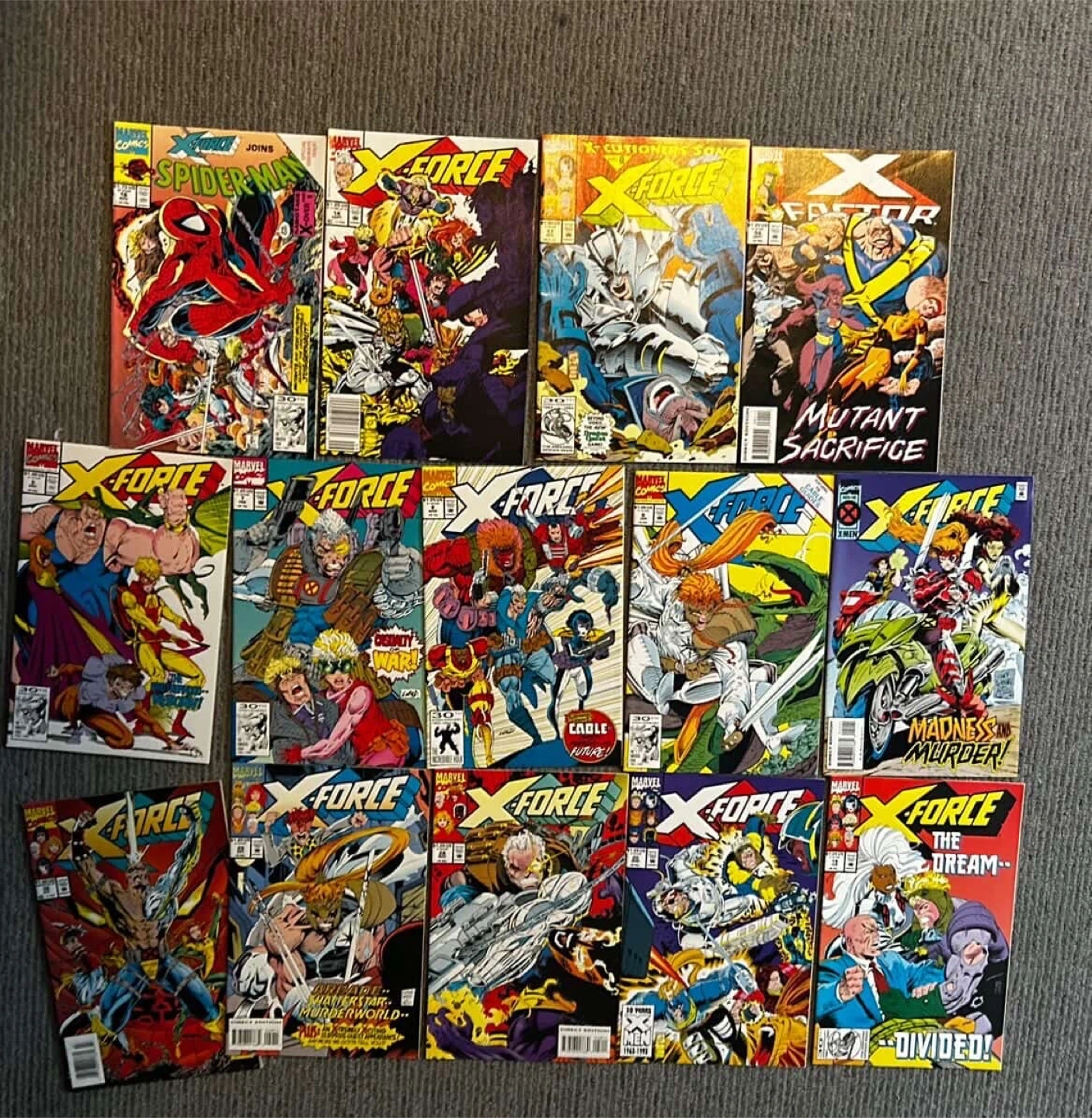 This is a lot of various Marvel and DC comic books. Includes X-Men, X-Force, X-Factor, Spider-Man, Justice League, and DC Connect titles. Issues vary from the 1990s and early 2000s, with some newer DC titles from 2023. A great collection for any comic fan!
