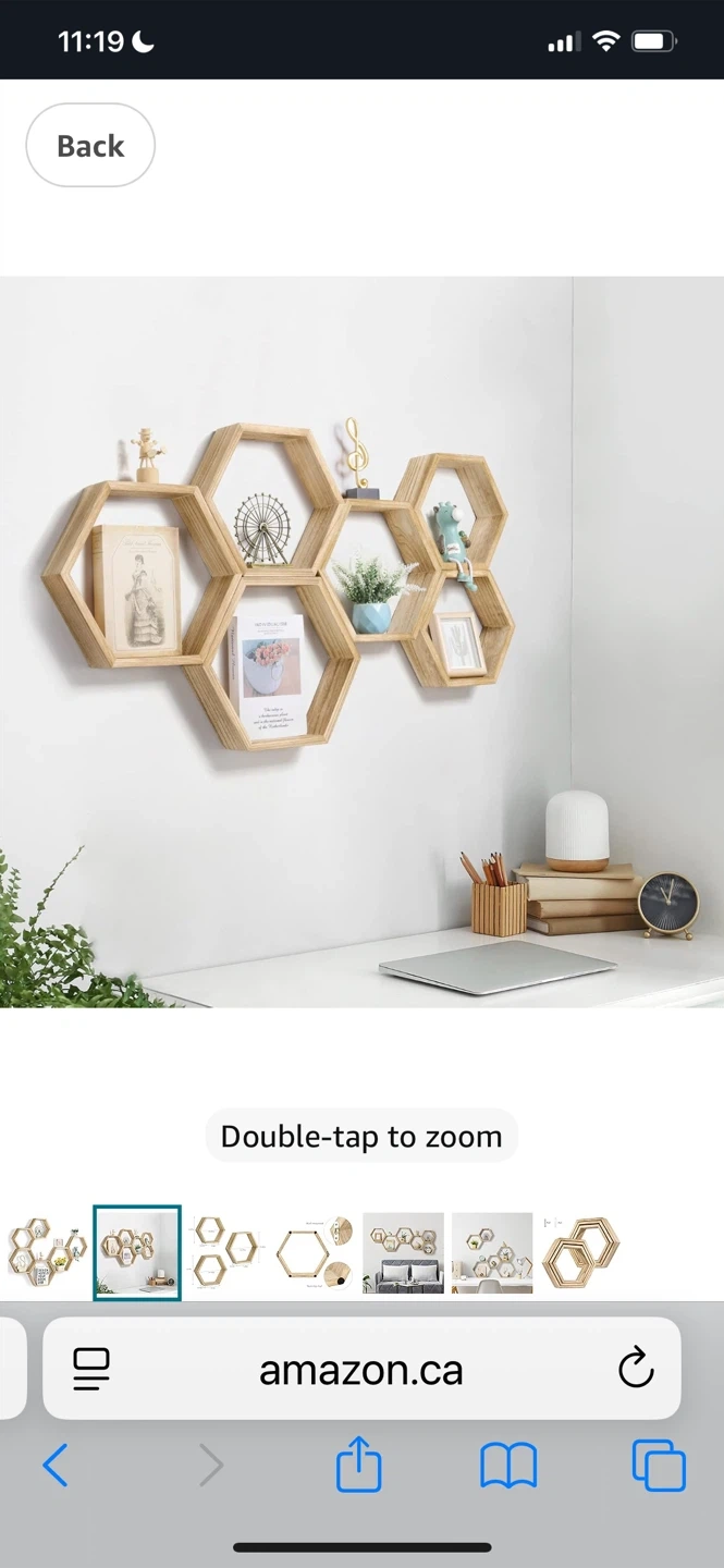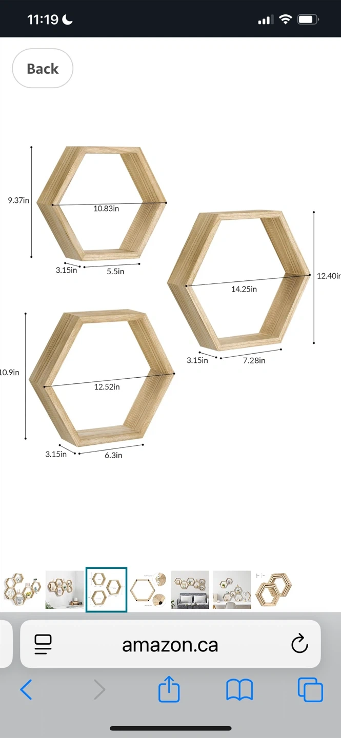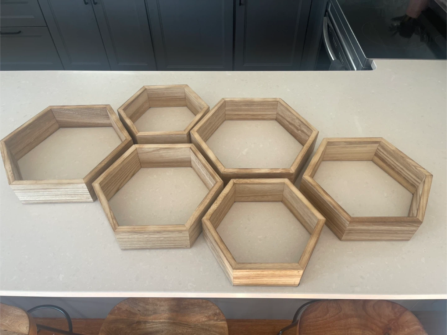Set of 6 Hexagonal Wood Shelves