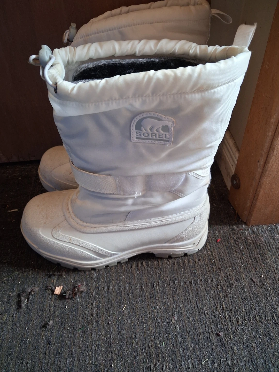 Buy & SellWhite Sorel Winter BootsWhite Sorel Winter Boots$32These are Sorel winter boots in white. They have adjustable straps and a rubber sole.ConditionLike newSize8WHERE TO MEETCheck LocationView MapSELLERRuth K ShmihelskyDowntown Belleville100 reviews0 chats·0 favorites·2 viewsSEND CHAT TO SELLERHi Ruth K Shmihelsky! I’m interested in your listing.Hi Ruth K Shmihelsky! I’m interested in your listing.Get the Karrot app to chatSign In to chat