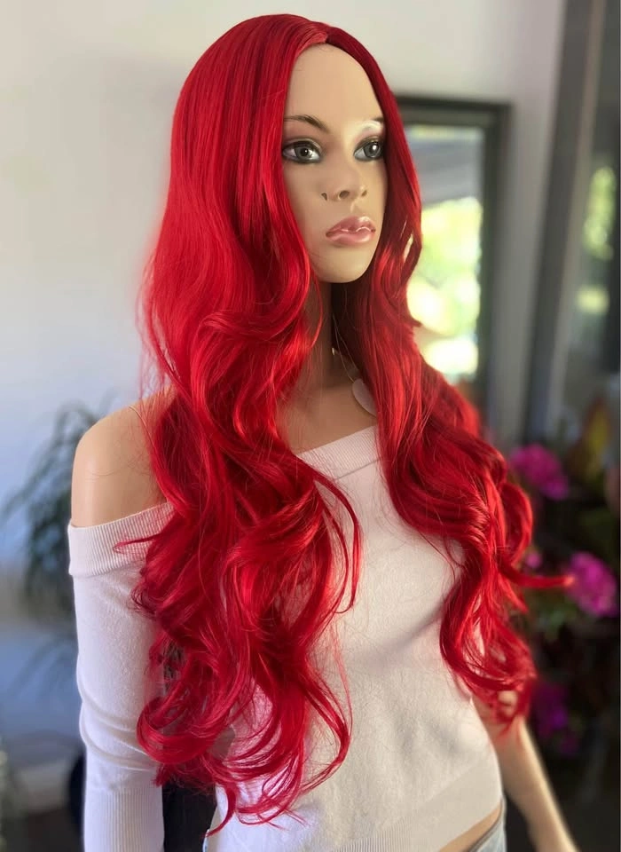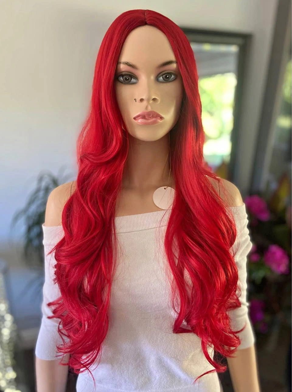 83Brand new synthetic wig from a smoke-free home 26-inch long, layered, wavy & solid bright red Stretch lace cap is breathable and comfortable Inner elasticated adjustable straps One size fits most Great for daily wear or cosplay Disney Little Mermaid Ariel, Poison Ivy, or Jessica Rabbit Pick up north end St Catharines