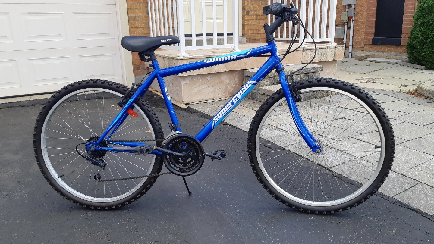 Supercycle Bike 26" tire it is ready to ride, brakes, gears chain, all parts has been oiled and tuned up. pickup location is near Jane st and Rutherford rd Vaughan yes bike is available will give pickup address when confirm coming time.