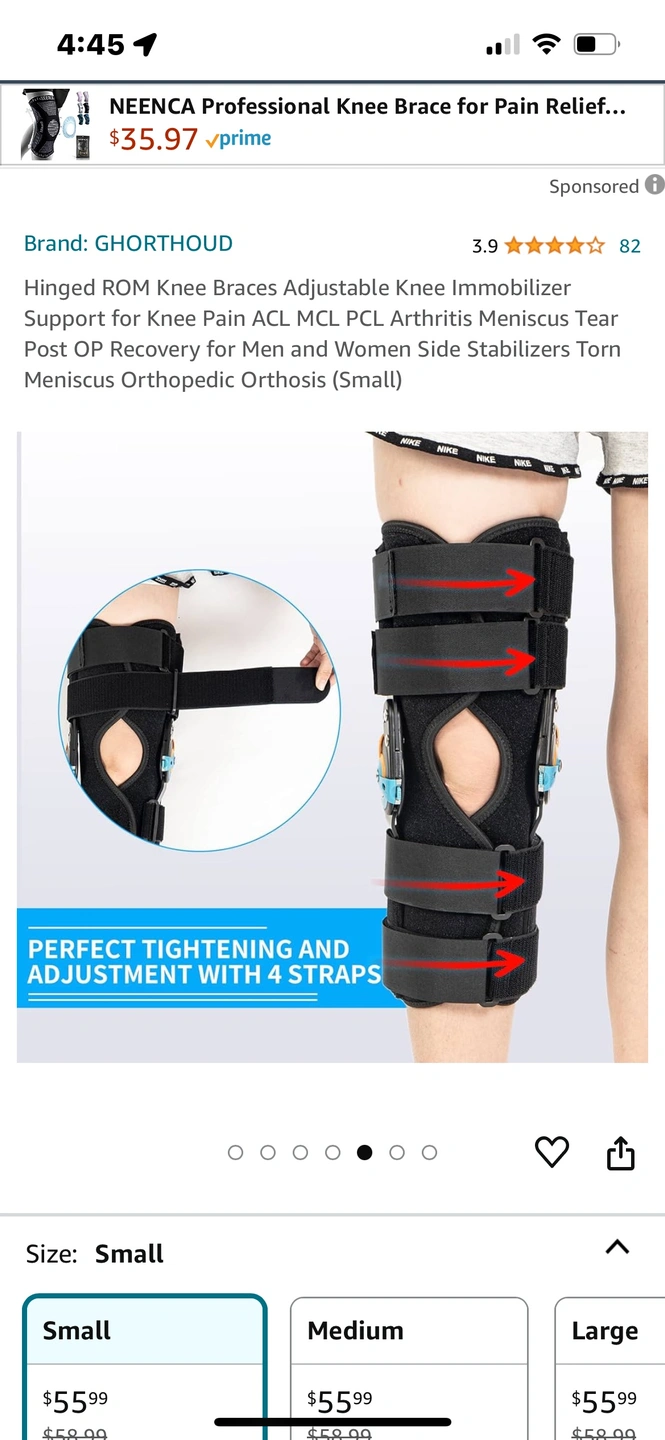 Hinged ROM Knee Braces Adjustable Knee Immobilizer
