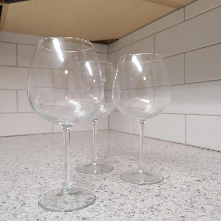 these are pretty big wine glasses. you cam forsure fit half a bottle per glass. so I've been told anyways π π one sadly broke so there are three. getting rid of because I am moving and trying to downsize as much as I can. pick up downtown
