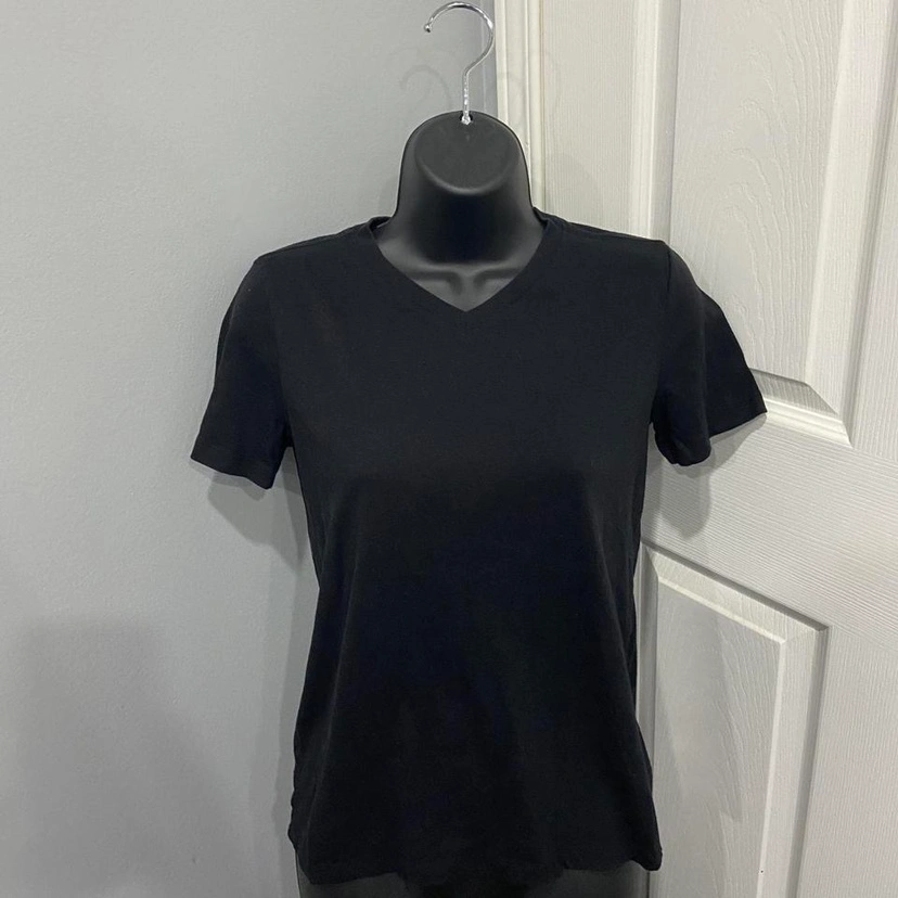 Plain black tee with v neck. Modest neckline and great for service jobs or projects. fits like a medium. msg for bundle deals 🤍