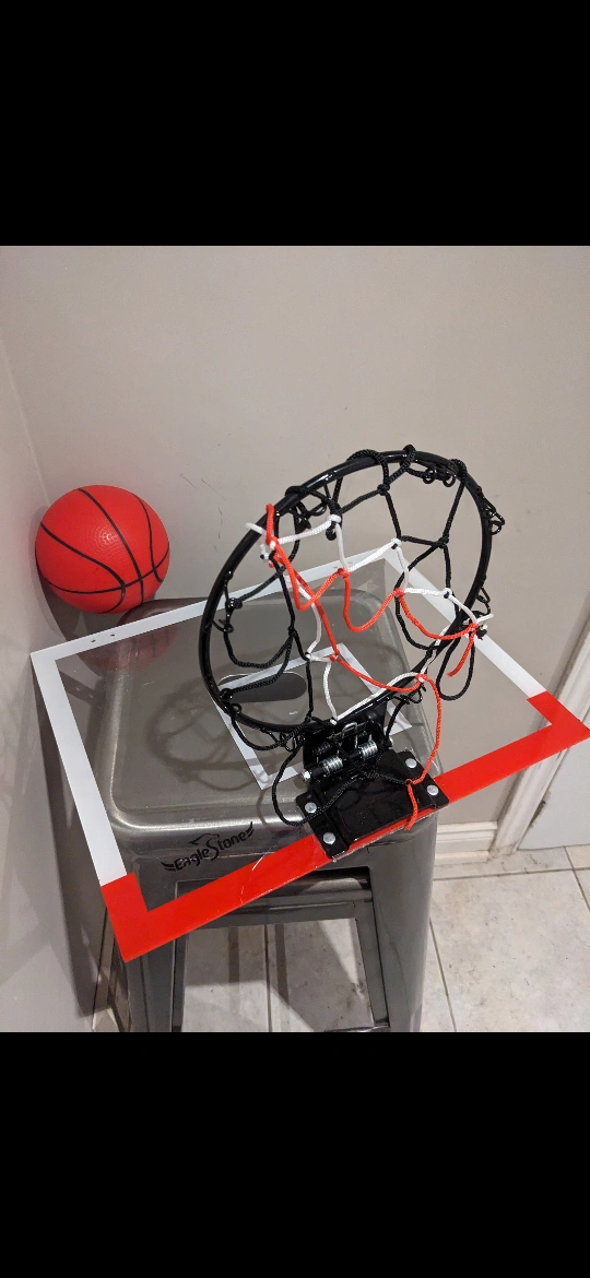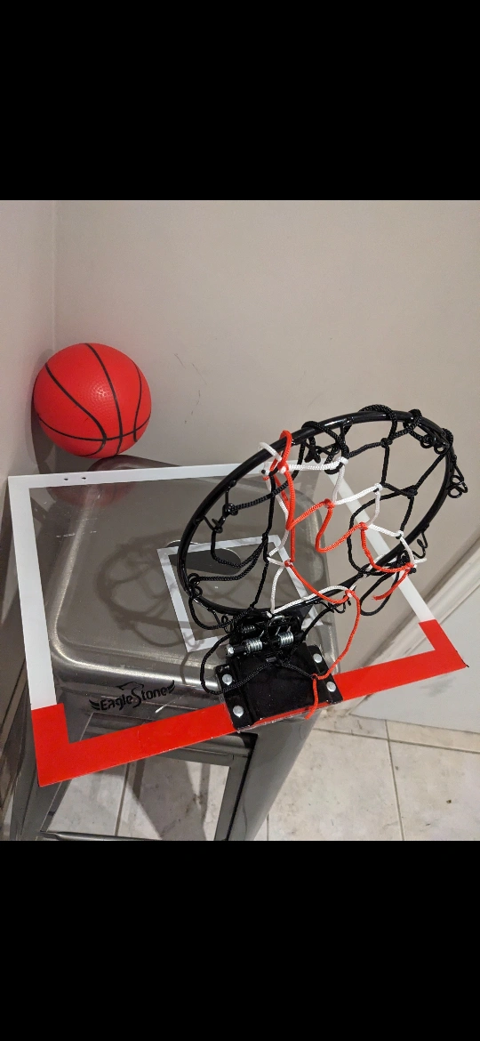This is a basketball hoop that is made by Eagle Stone. It includes a backboard and a net. Can dunk.