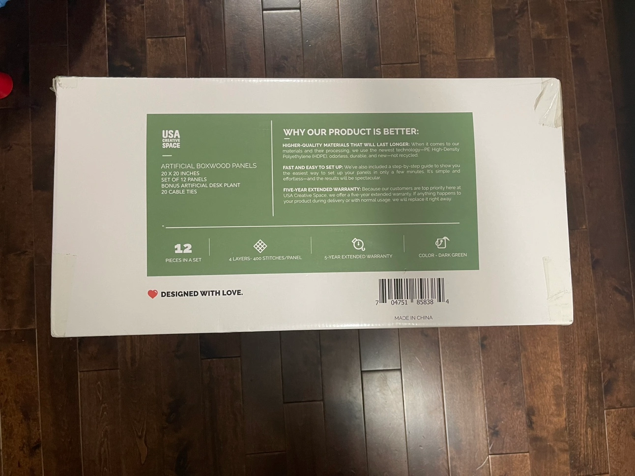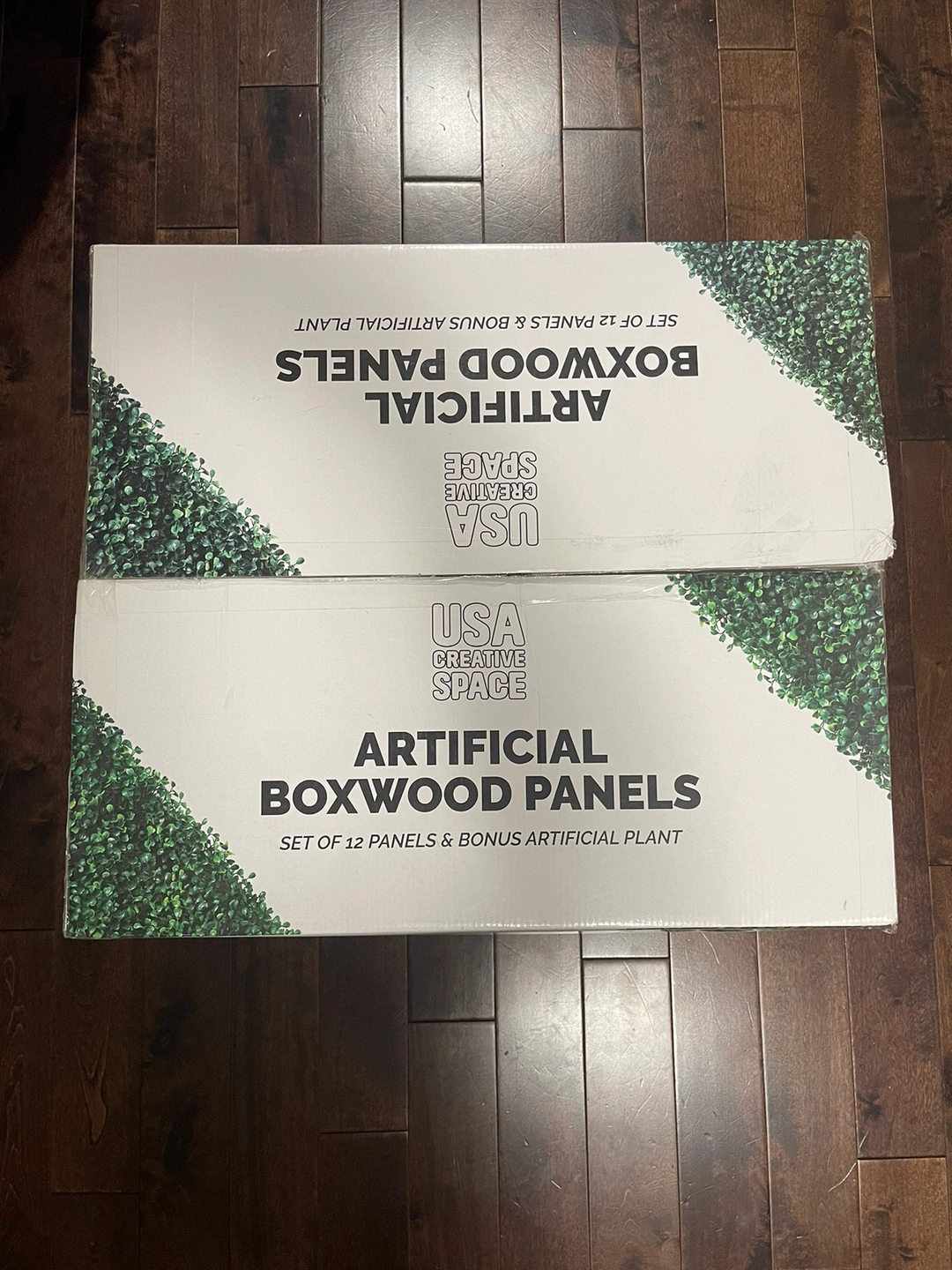 I’m selling a Brand New Never Opened Top of the Line ARTIFICIAL BOXWOOD PANEL SET OF 12 PIECES. I’ve attached the Amazon Price as well. MSRP ranges from $150-$300. Perfect for a decor or a business decor.