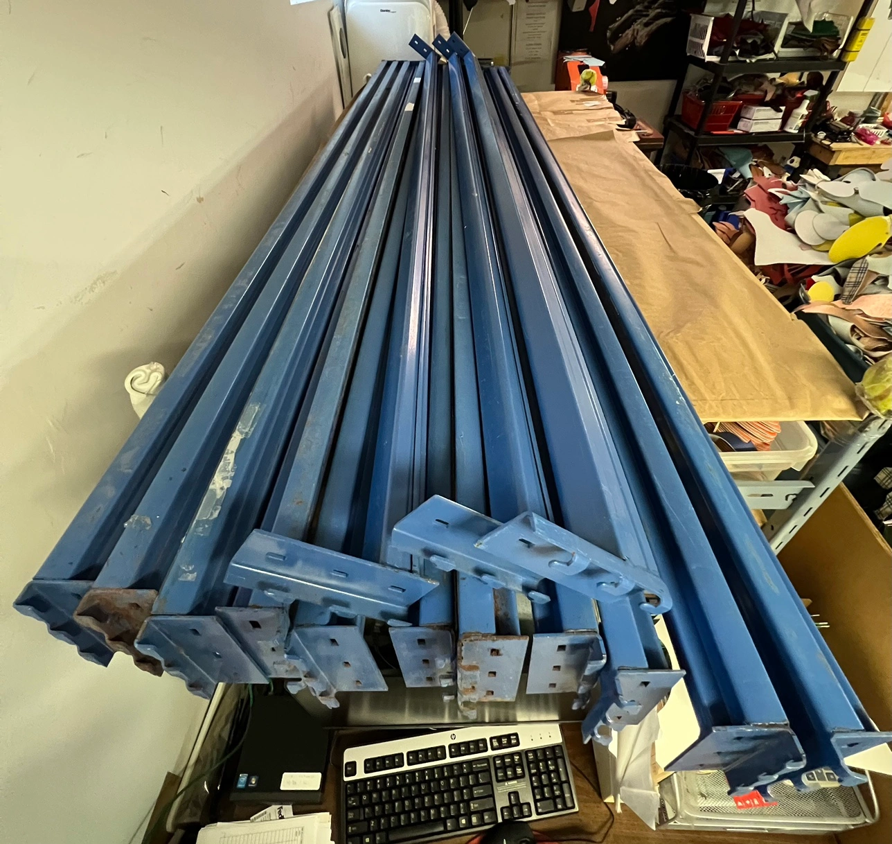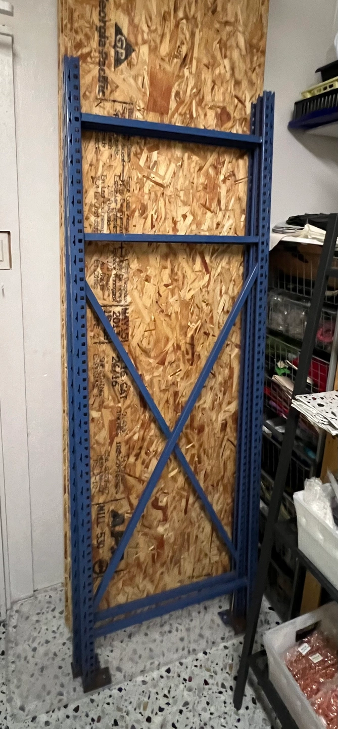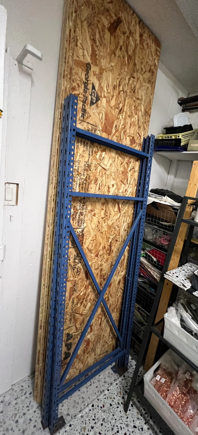 Heavy duty adjustable shelving unit. Used to be a Pet Valu shelving unit before they re-branded.