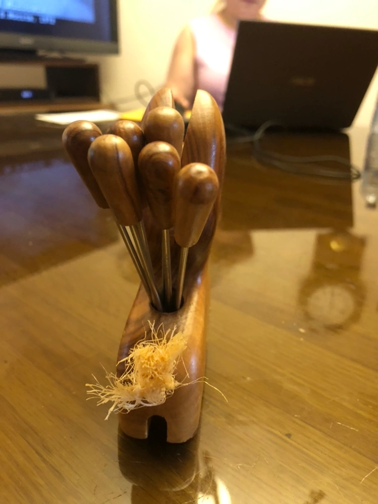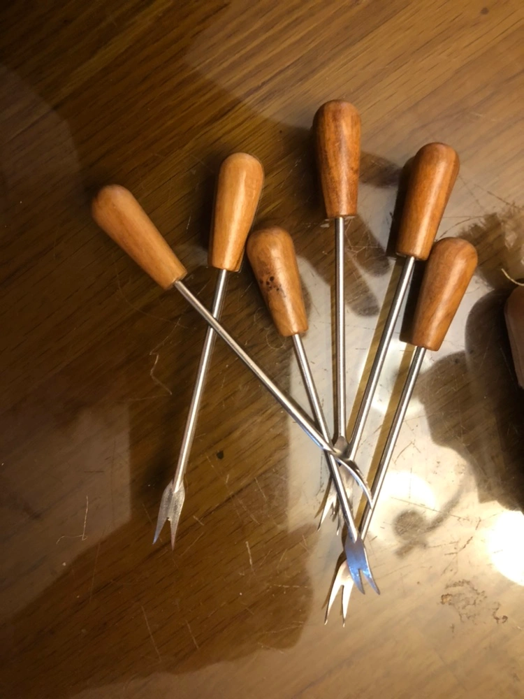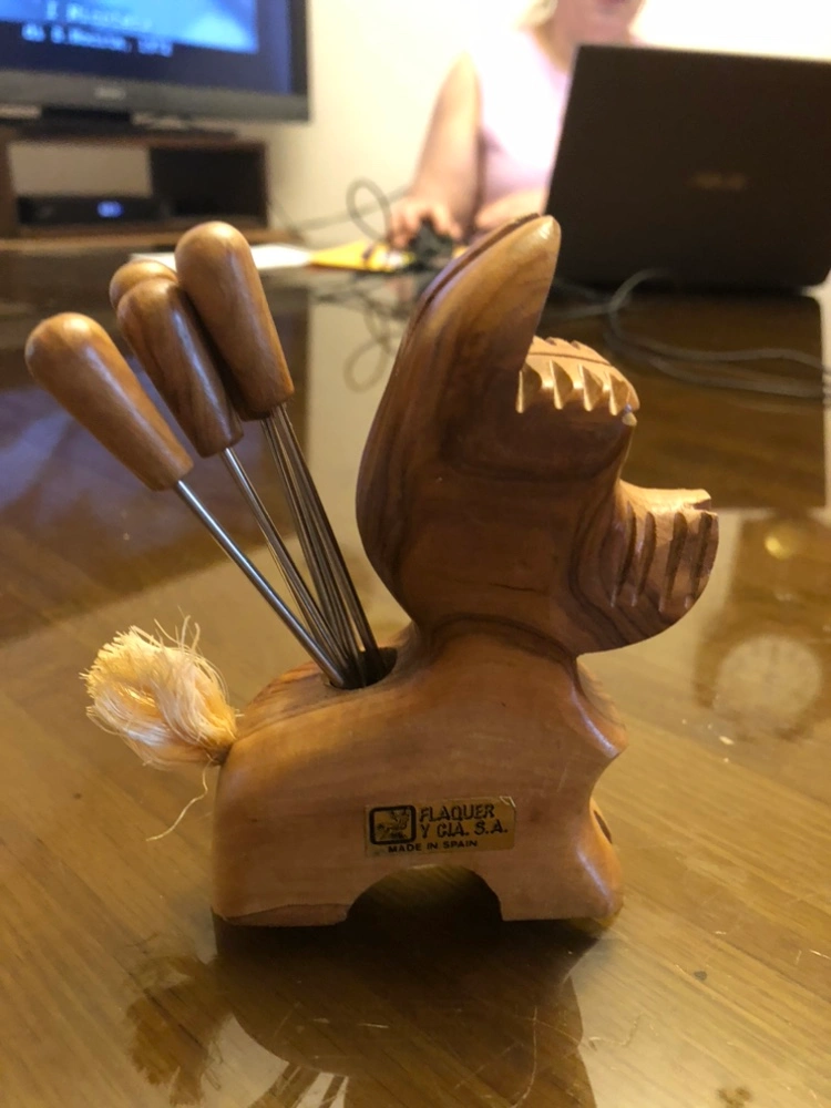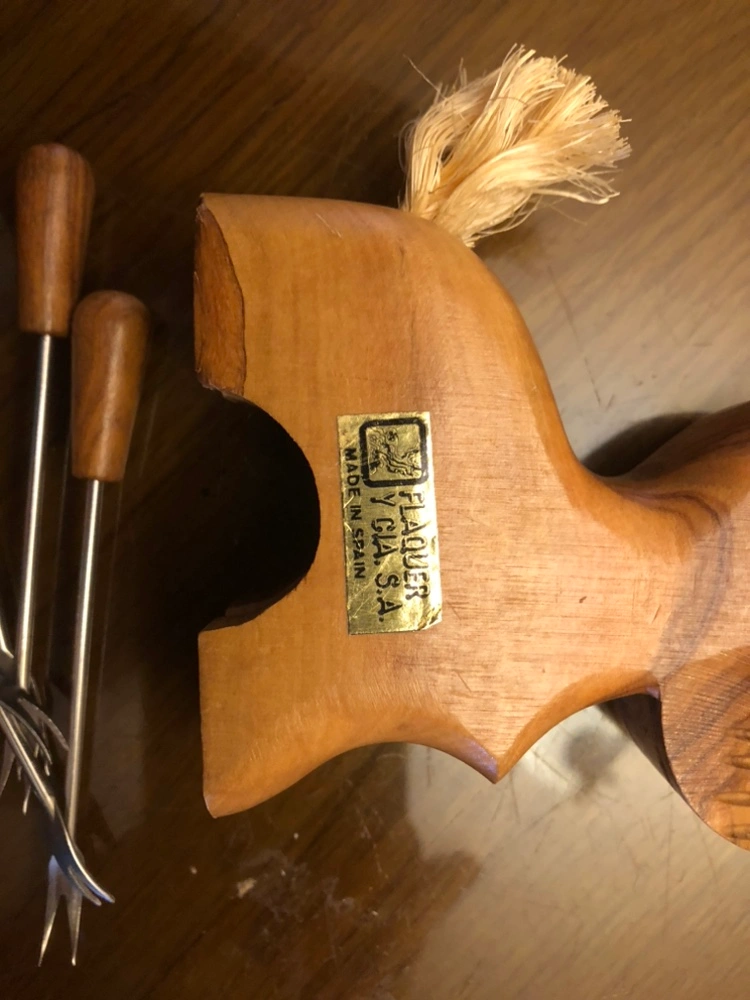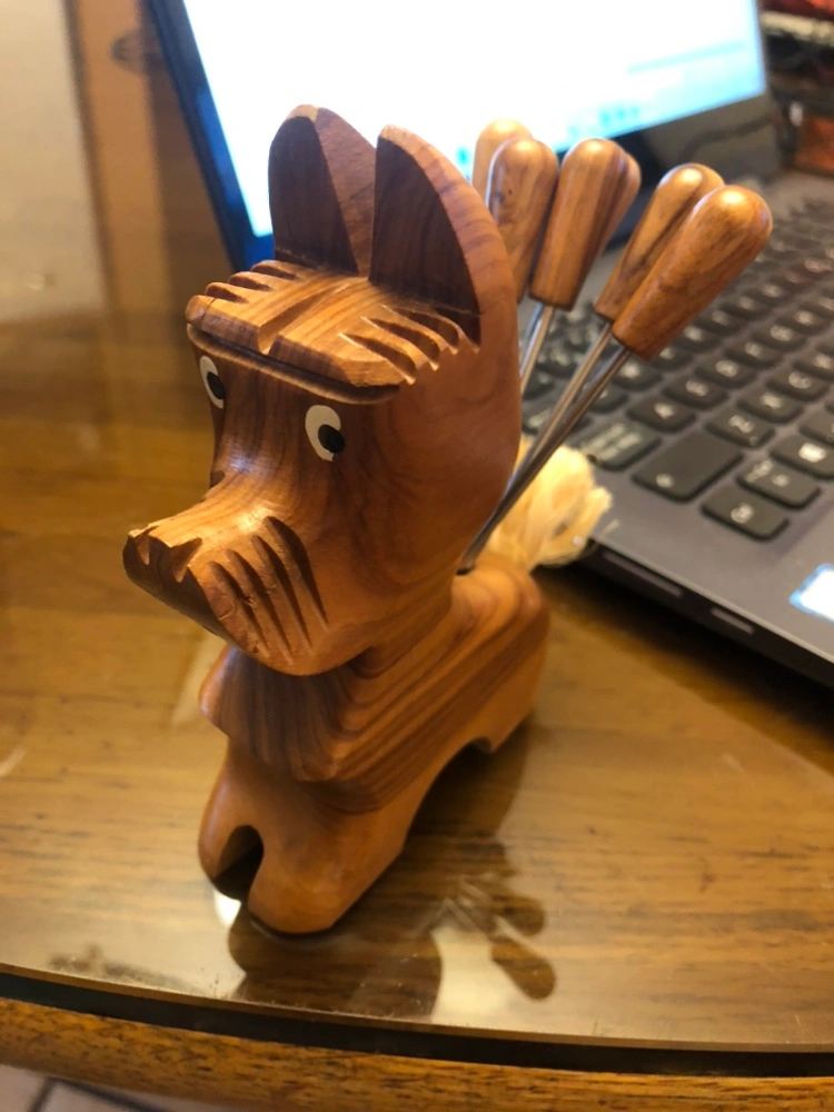 1960’s Vintage Olive Wood Scottie Dog with set of 6 Cocktail Picks