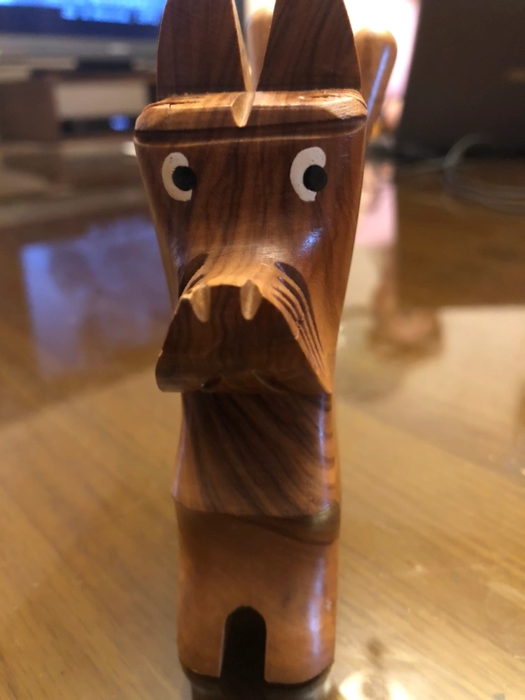 Dog hand carved in Spain from Olive Wood with a Sisal Tail.