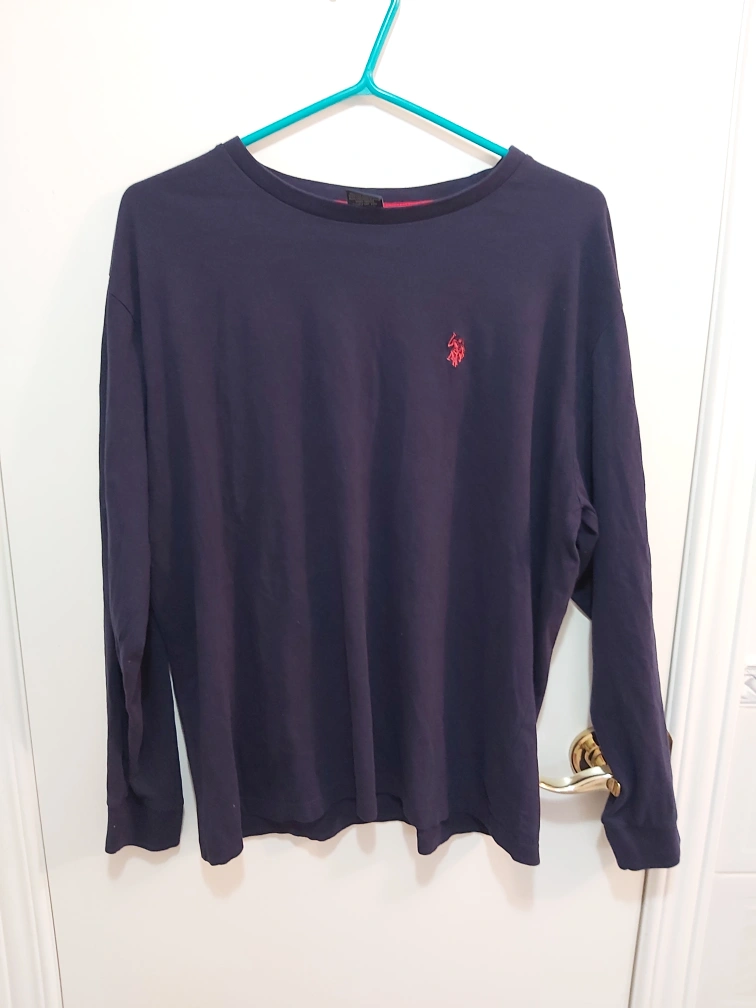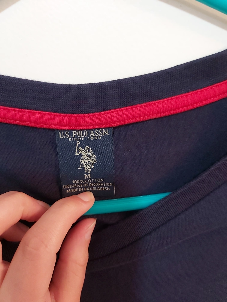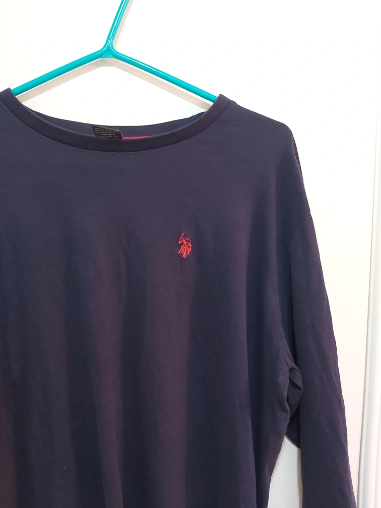 Brand: US Polo Assn Type: Longsleeve with small Polo logo on one side Colour: Navy blue with little red logo Size: Medium (M) Composition/material: 100% cotton Additional measurements: 53 cm pit to pit, 60 cm length Condition: Excellent