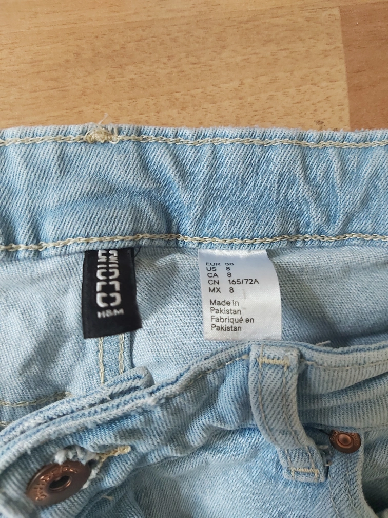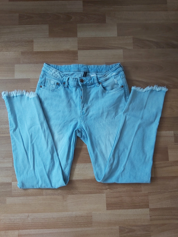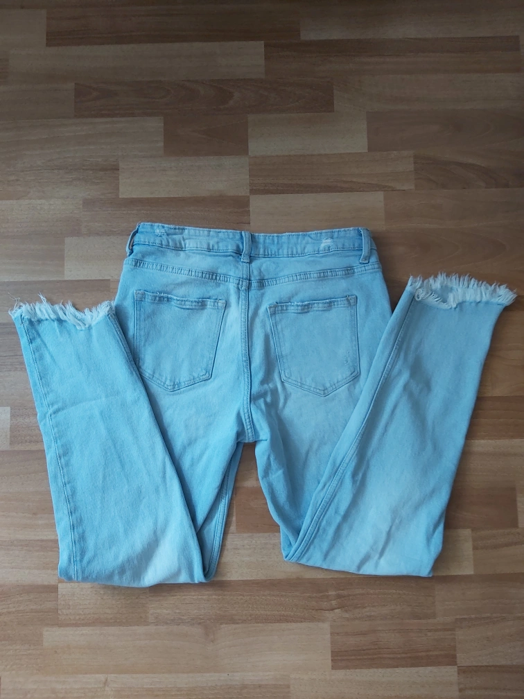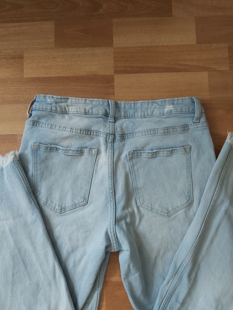 Type: Jeans in a light colour with a bit of distressed parts and raw hem ends