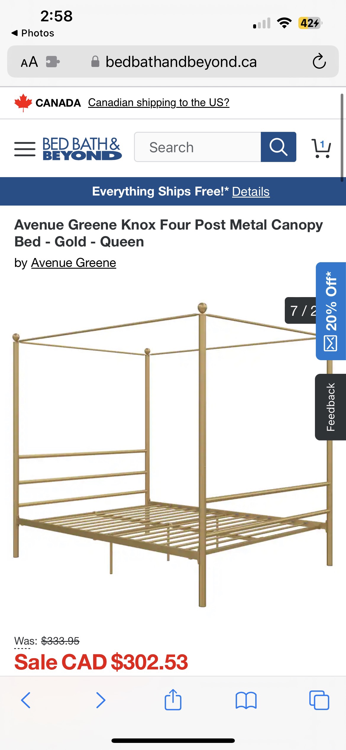 1 / 21 / 2Buy & SellGold Canopy Bed - QueenGold Canopy Bed - QueenFree**NEEDS TO BE PICKED-UP BY AUG 1st** Queen size gold canopy bed. Great condition, my room just isn’t big enough. Pick-up High Park TTC station. 😌ConditionGoodWHERE TO MEETHigh Park TTC StationView MapSELLERverifiedAlexisHigh Park N1799 reviews3 chats·4 favorites·214 viewsSEND CHAT TO SELLERHi Alexis! I’m interested in your listing.Hi Alexis! I’m interested in your listing.Get the Karrot app to chatSign In to chat
