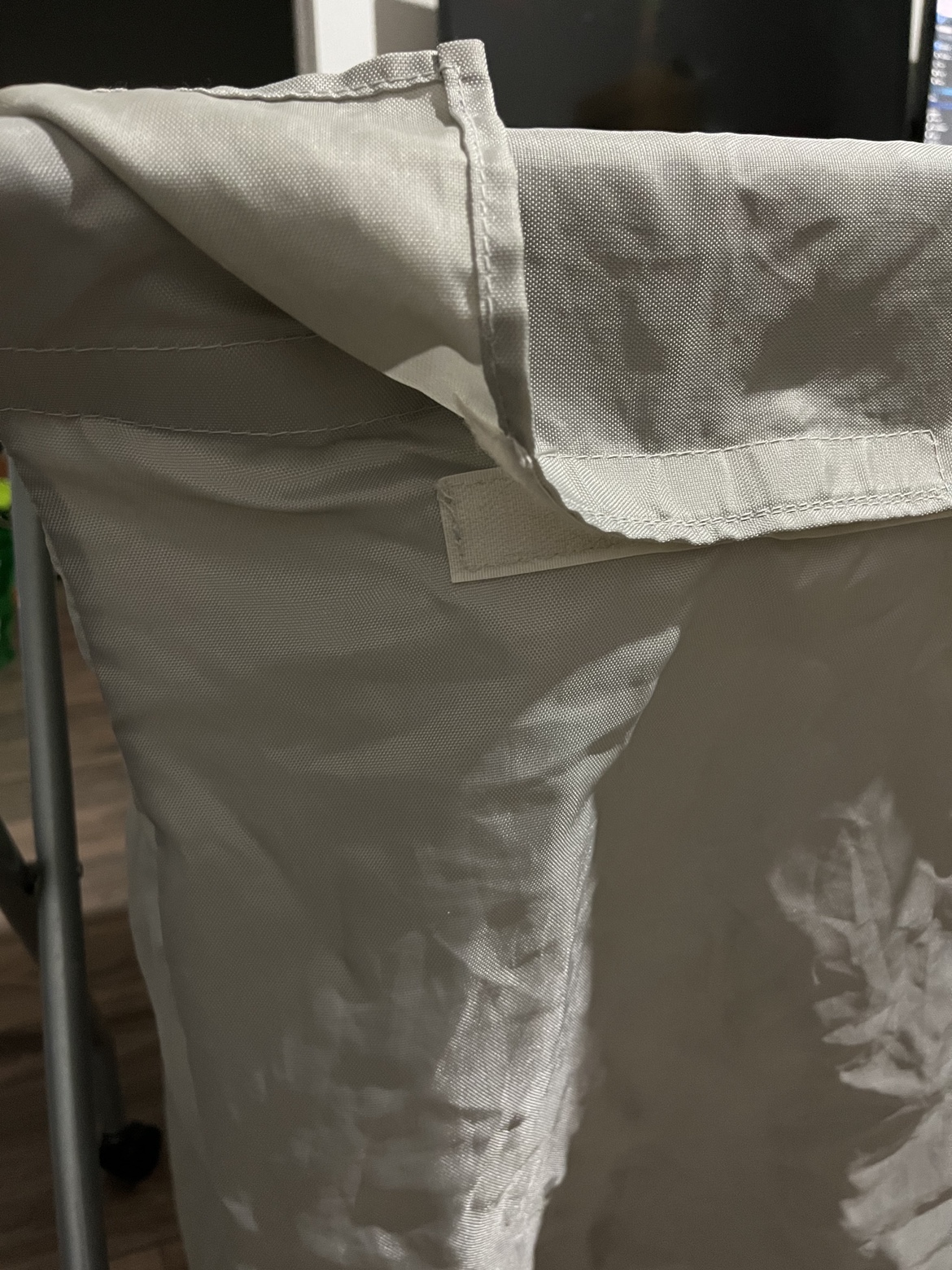 This laundry hamper is grey and has wheels. It collapses for easy storage. It has a metal frame and a fabric bag.