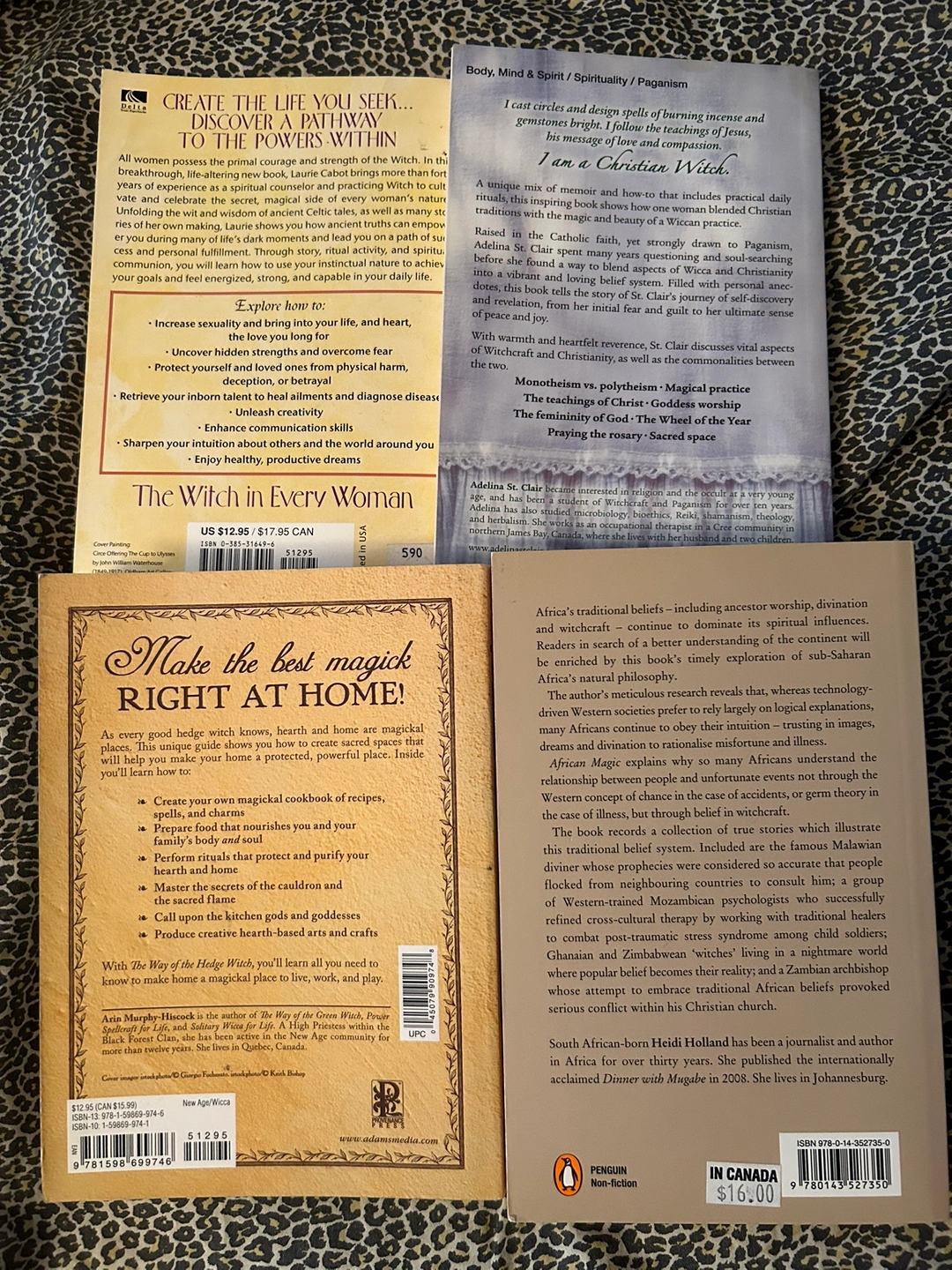 4 witchy books, getting rid of for someone in my family who’s no longer interested in this stuff Like new condition for all 4 books Valued at $55 #freecycle
