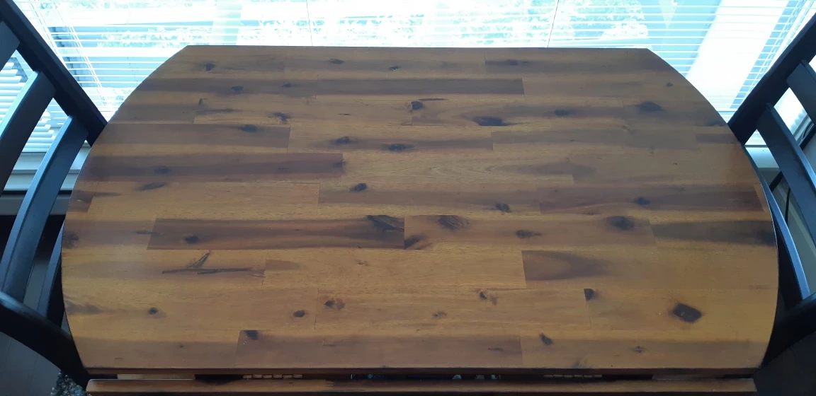 Small/condo sized dining table with collapsible sides and matching pair of chairs, great condition.