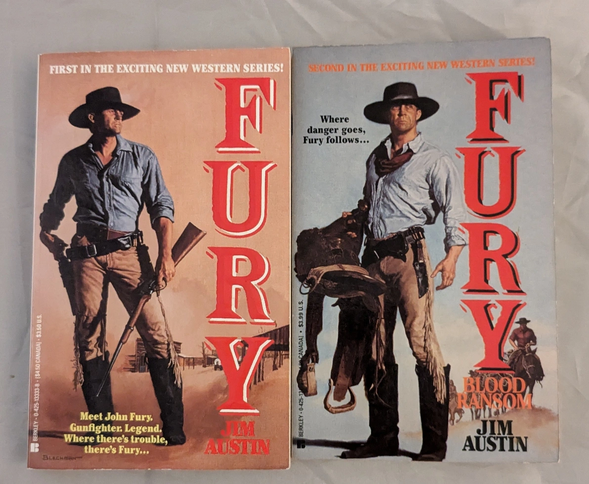 Set of five paperback books, all in the "Fury" series by Jim Austin.
