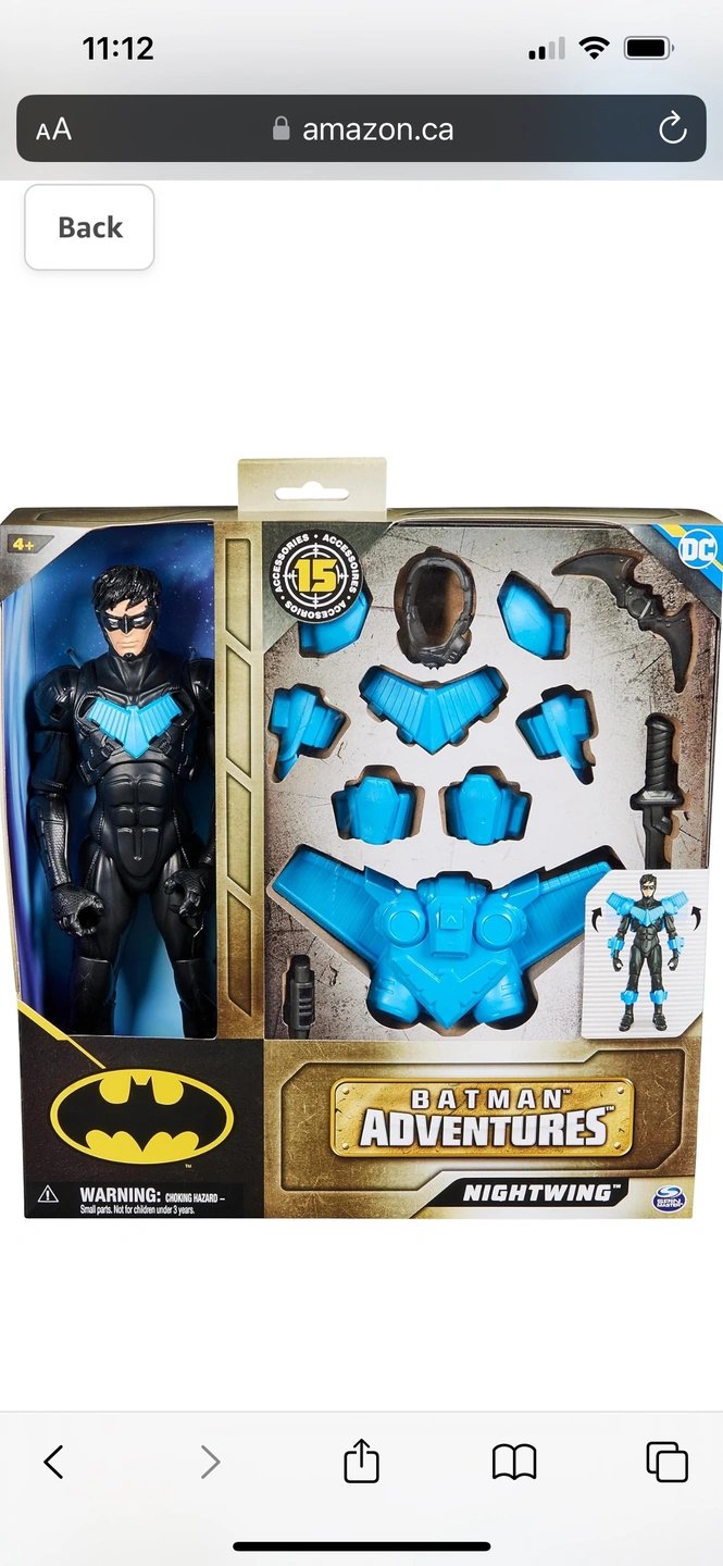 DC Comics, Batman Adventures, Nightwing Action Figure with 15 Armor Accessories. 12” tall.