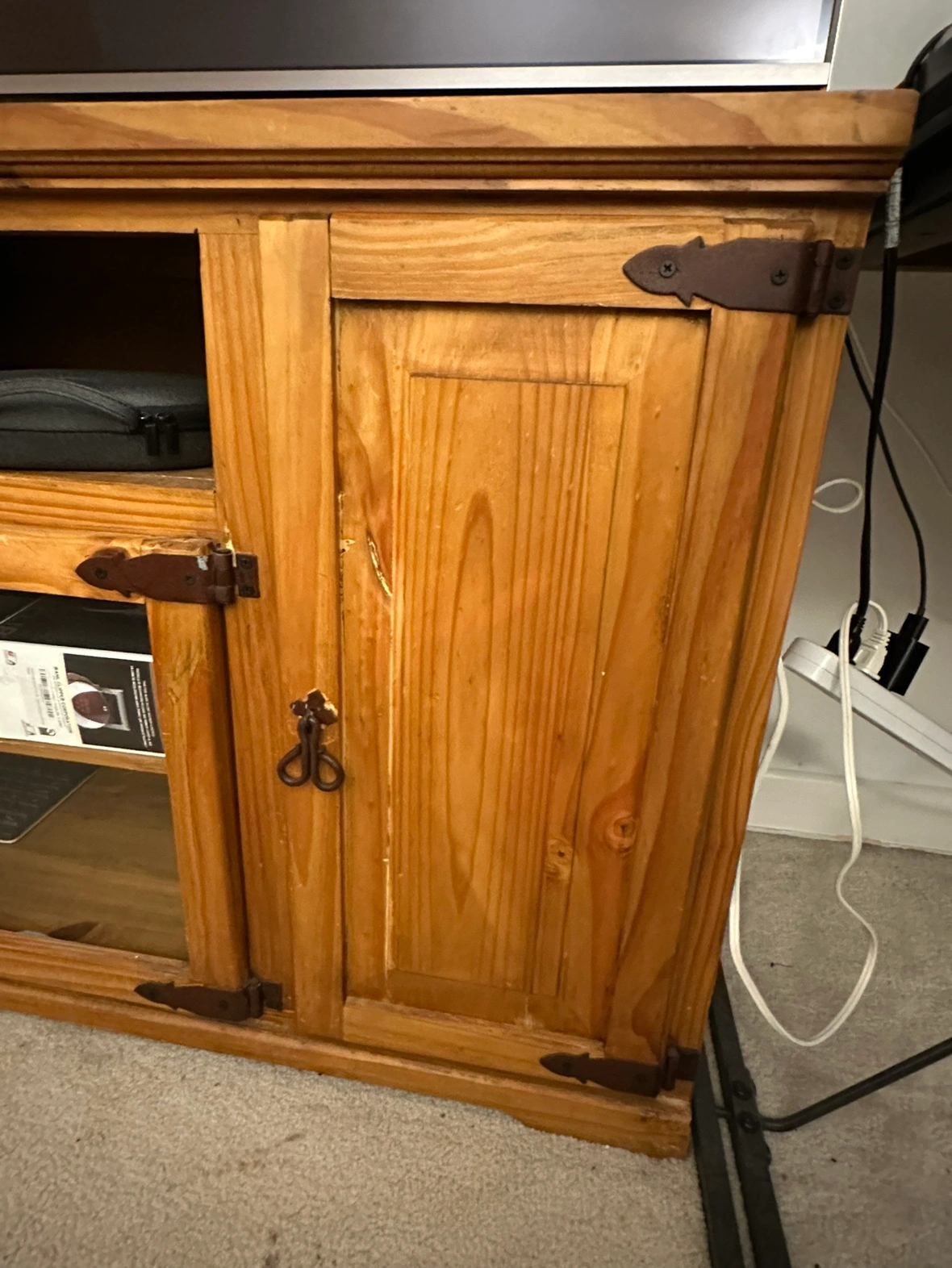 Original wood with natural finish beautiful and very sturdy wooden TV cabinet.