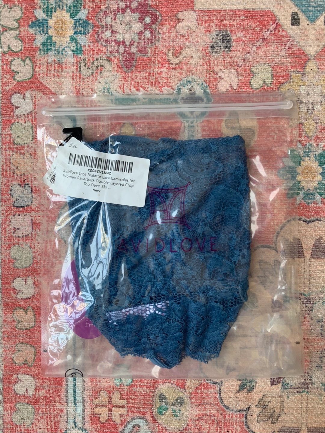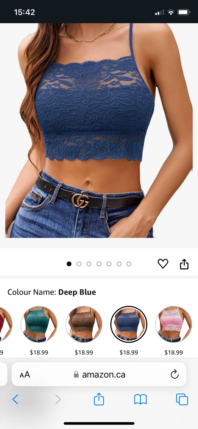 Lace bralette camisole top with racer back and double layered. Bought on Amazon for $18.99 plus tax.