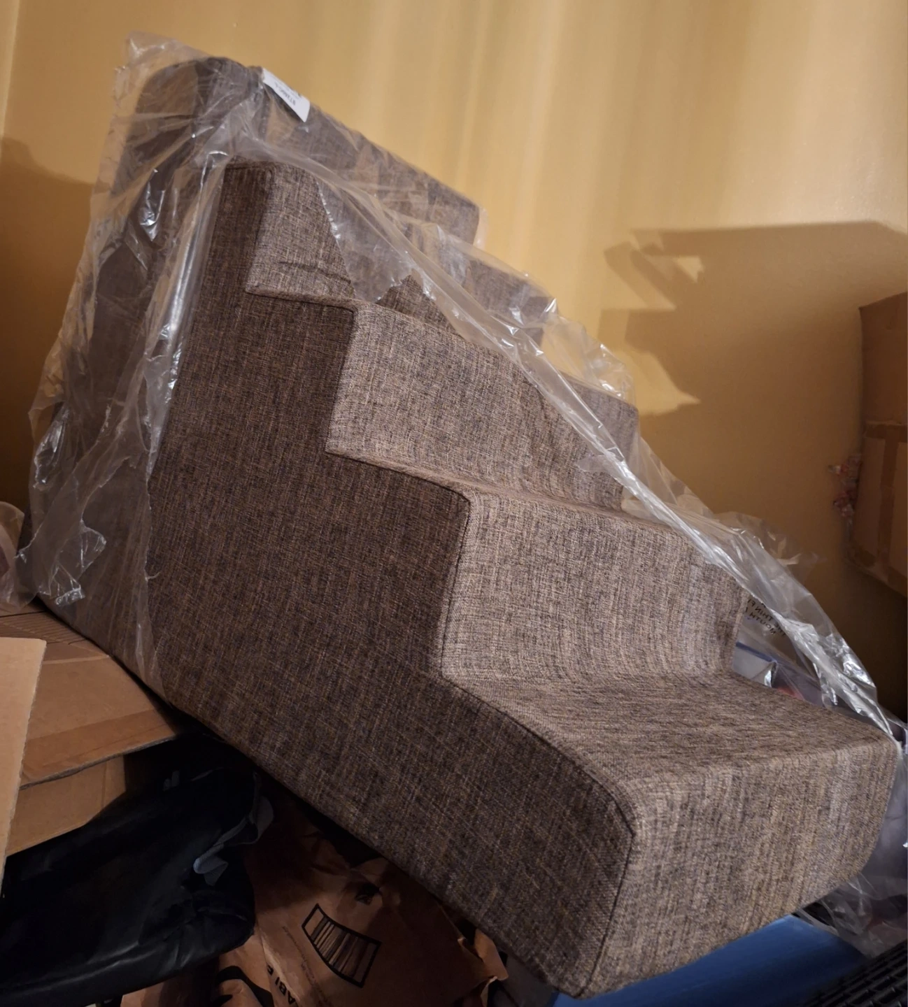 5 Pet foam steps. Removable washable Brown linen cover