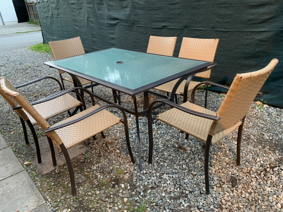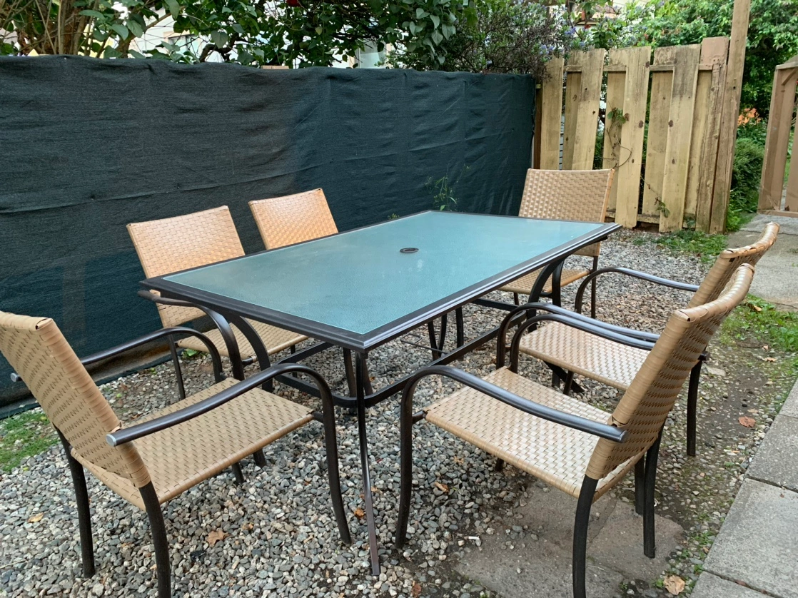 CB2 Dylan Solid Wood Dining Table set with Metal Legs