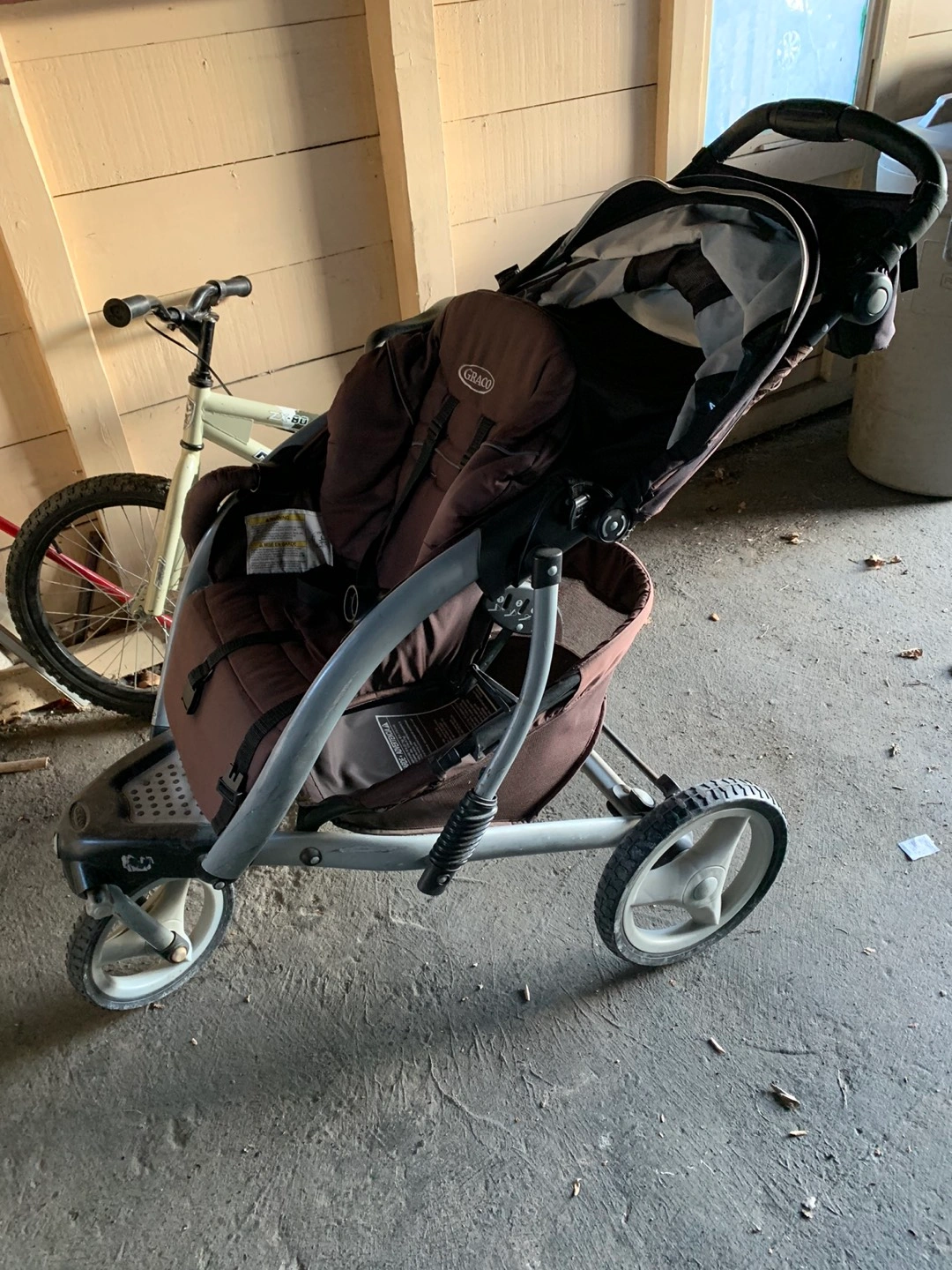218Graco brand Used but in very good condition Folds very well Reclines very well With rain cover 12” big detachable wheels $40 obo Pickup near Scarborough town centre