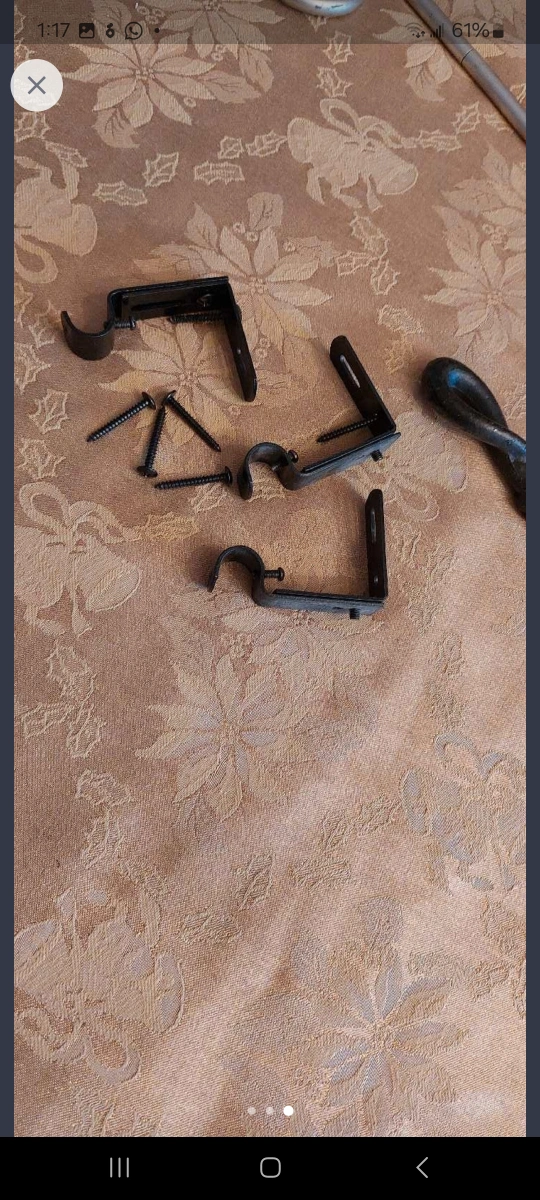 Three curtain rods for various purposes. Two include hardware. One white, one silver, one black. Black rod extends to 2 feet and 20 inches Silver is 63 inchesWhite extends from 28" to 48.