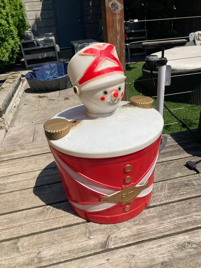 Increasingly hard to find rare blow mold toy chest in great shape. No noted cracks or damage. Usual wear and tear for something this old. Great for nostalgia or display. Feel free to ask any questions