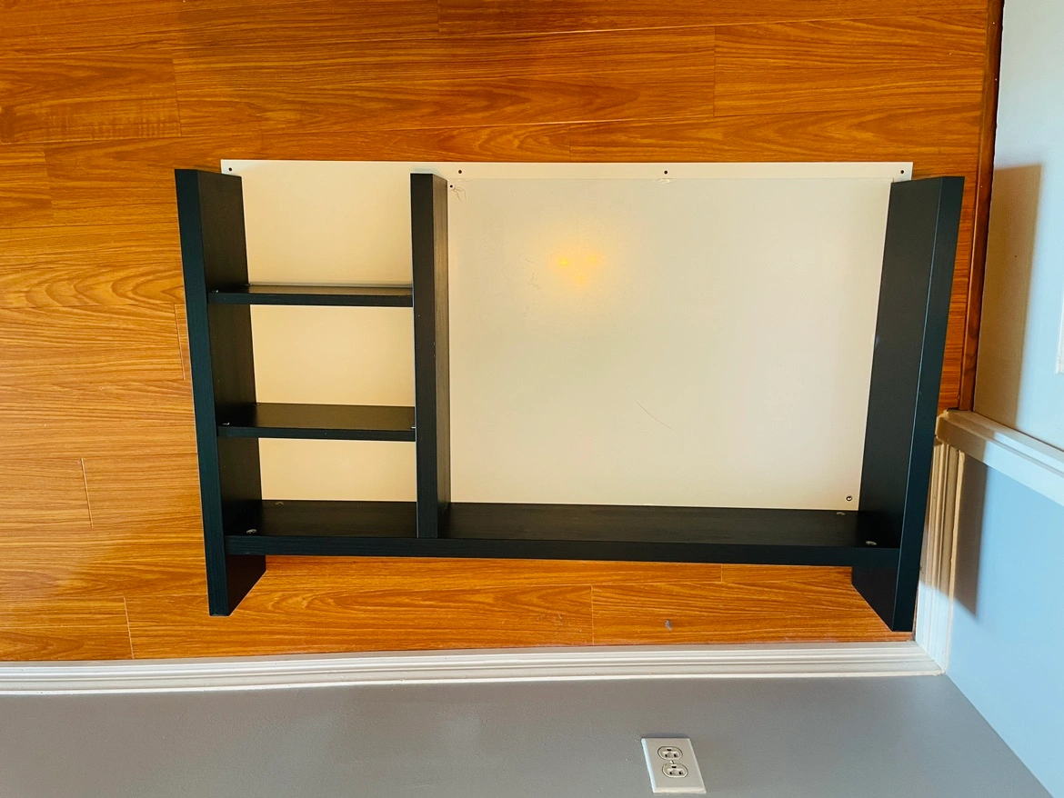 Upper book shelf has been removed for easy pick up