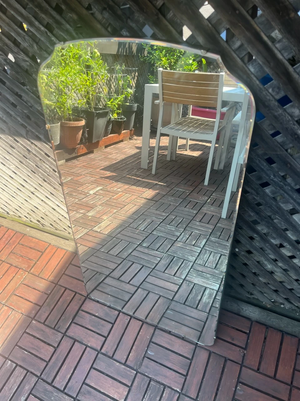 VERY HEAVY: the mirror weighs 25 pounds. Consider this for when transporting home and especially mounting.