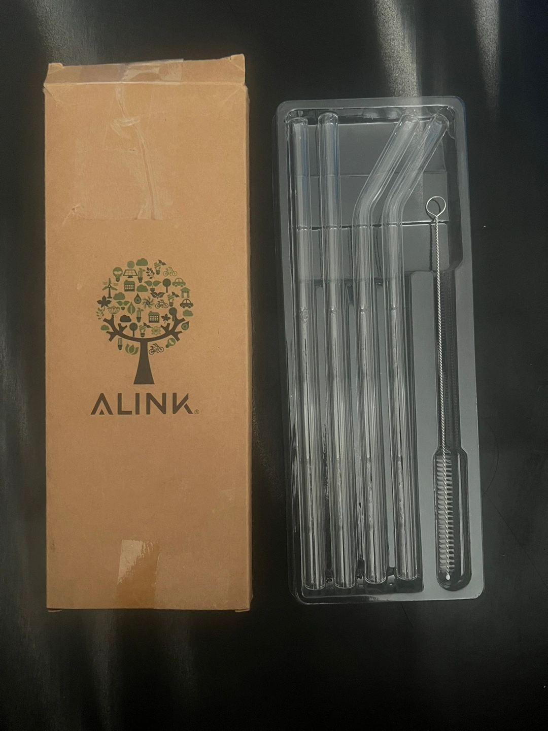 117Set of four glass drinking straws and cleaning brush in original packaging and never used.