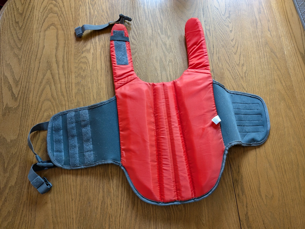 Ripstop material maximizes buoyancy without restricting movement on land, neoprene belly band supports the belly and chest.
