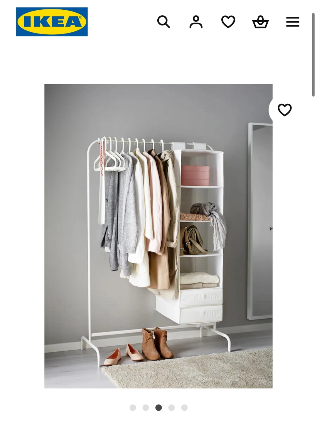White metal clothes rack with drawers.