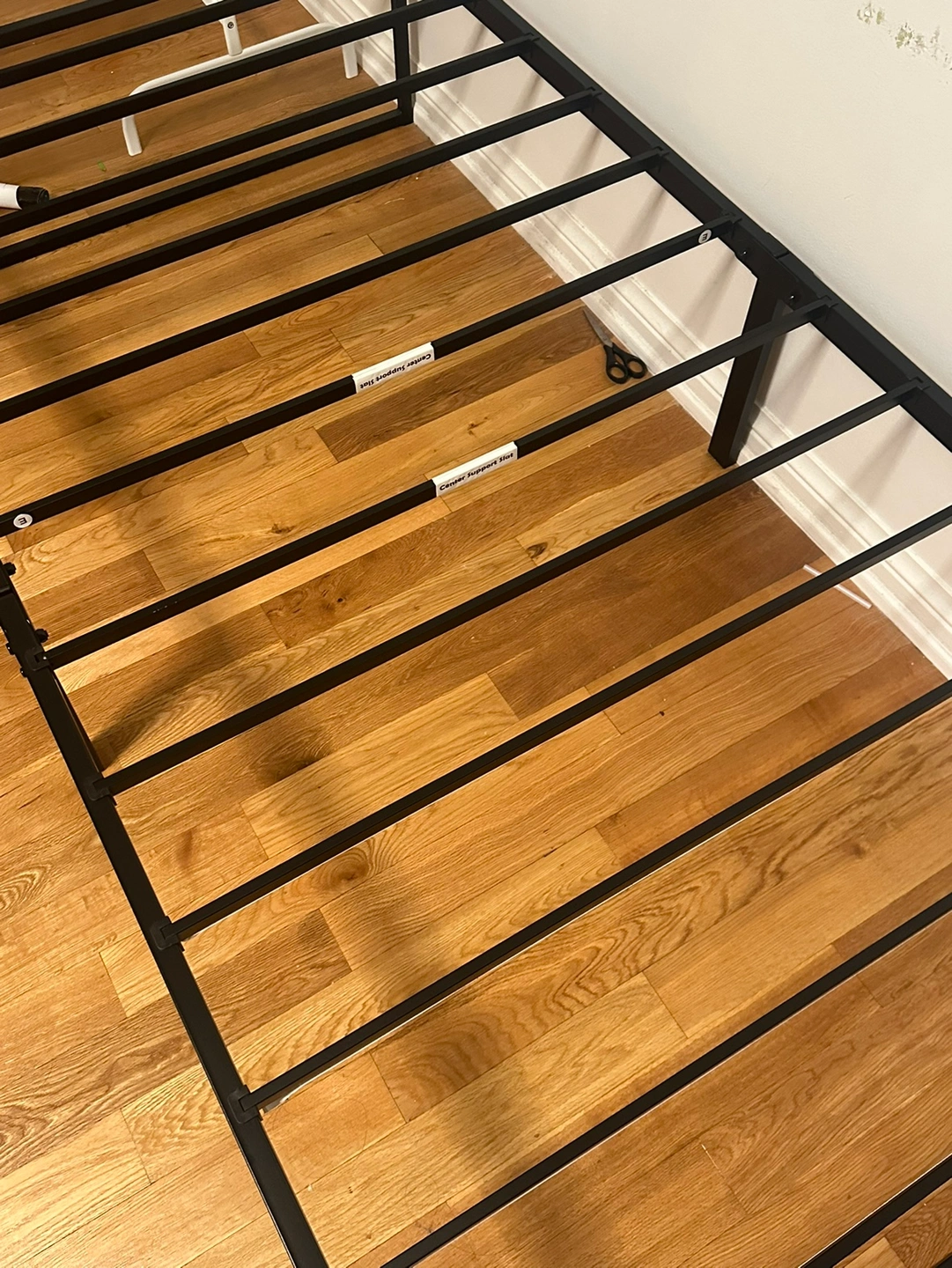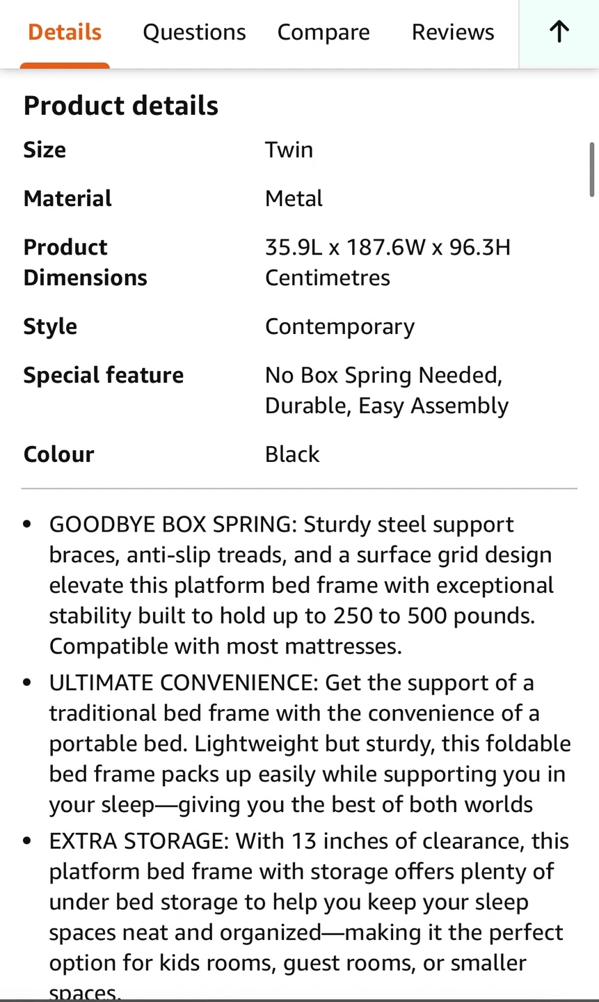 Black metal bed frame with no box spring needed.