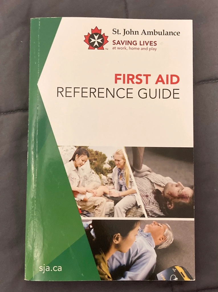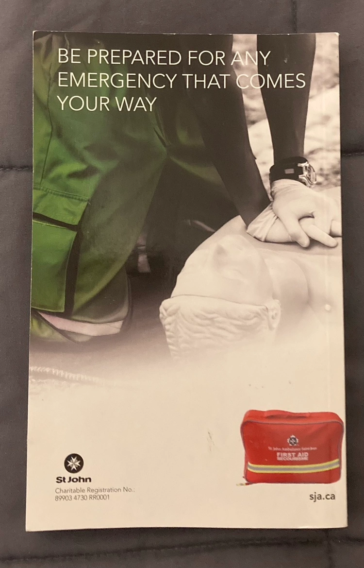 This is a first aid reference guide from St. John Ambulance. I used it to help me gain my First-Aid certification and i believe it could greatly come in use for someone who might need it.