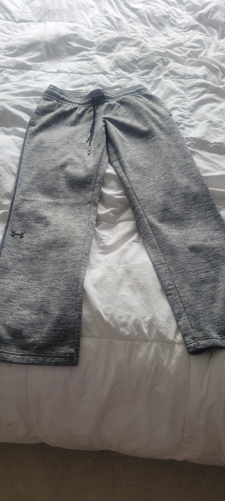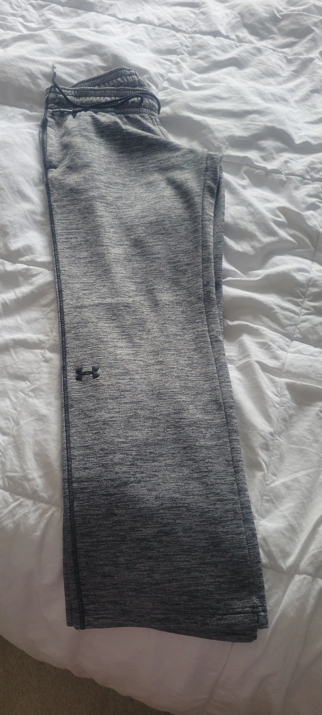 Men's grey Under Armour joggers with a straight leg. They are a size medium. These joggers have a draw string waist and pockets.