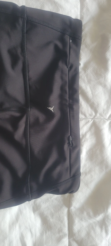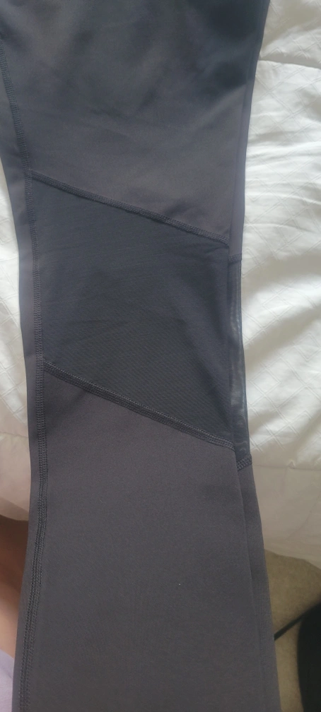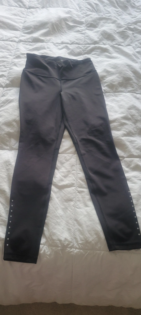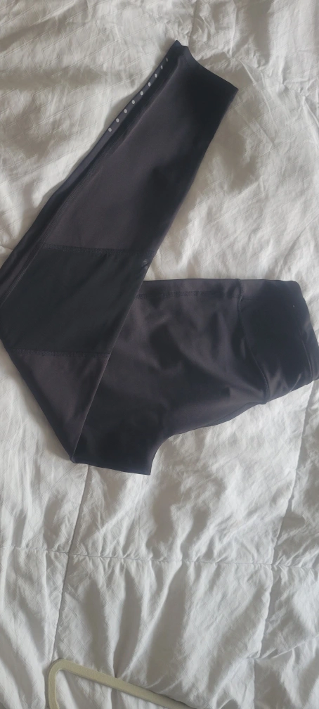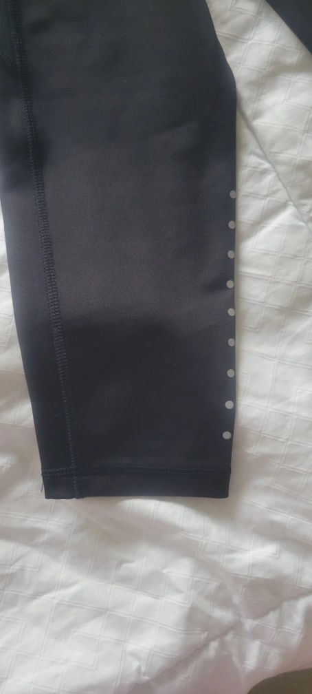 These are black running tights with mesh panels on the back of the bottoms of the legs and reflective detailing. Worn once.