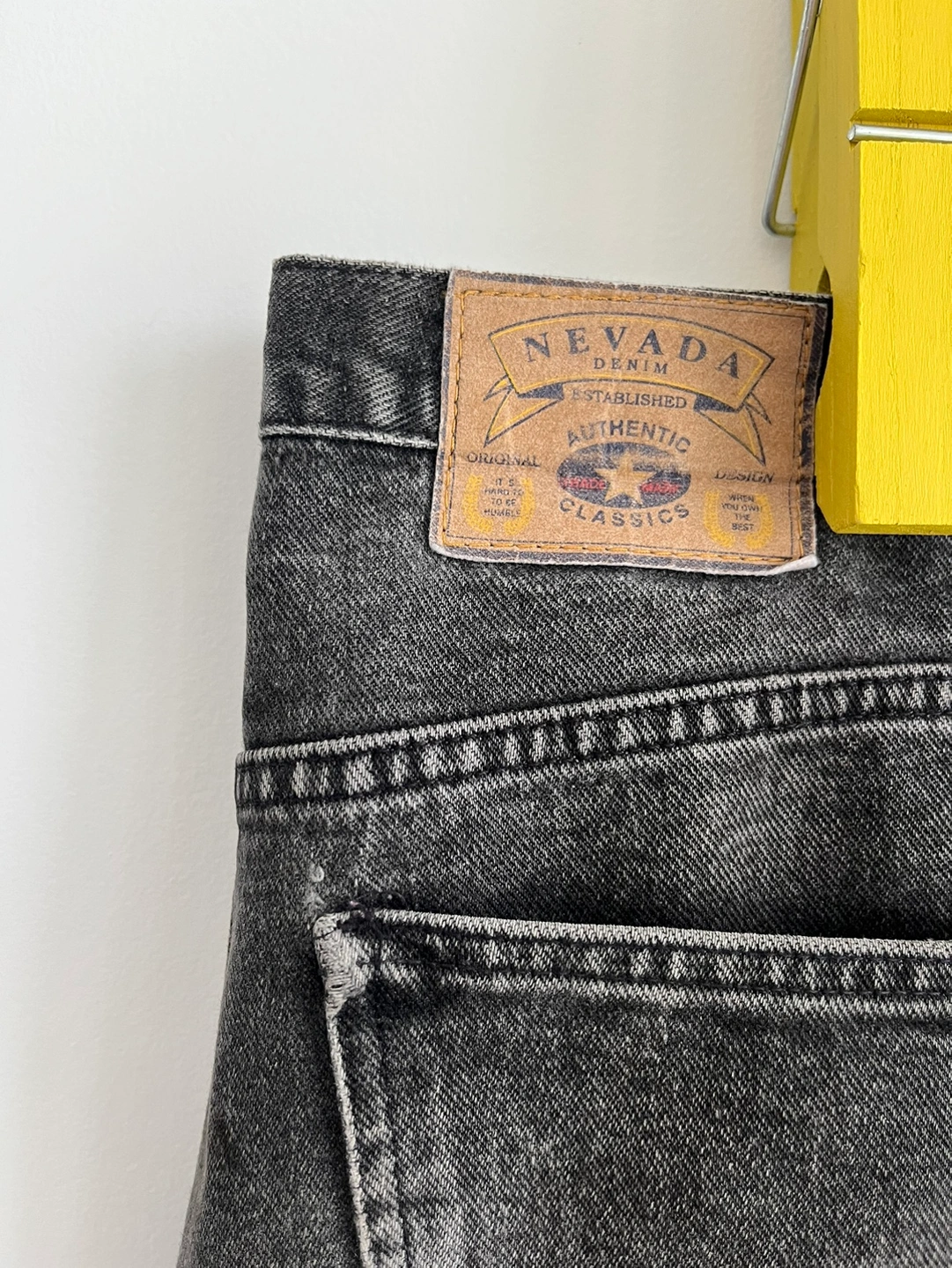 Charcoal / grey vintage denim Nevada jorts in great condition. Tagged size is 36 but fits more like a 34 or a 32 with a belt.