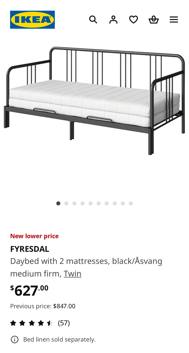 IKEA metal pull-out bed with twin mattress
