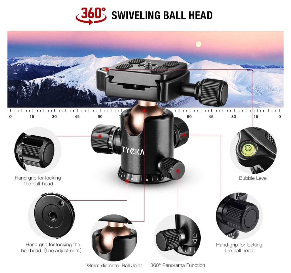 360° PANORAMA: With two independent control knobs, the specially designed ball-head can rotate 360° allowing you to get the perfect shot every time. The ball-head also has one built-in levels which allows you to get the straightest shot possible.